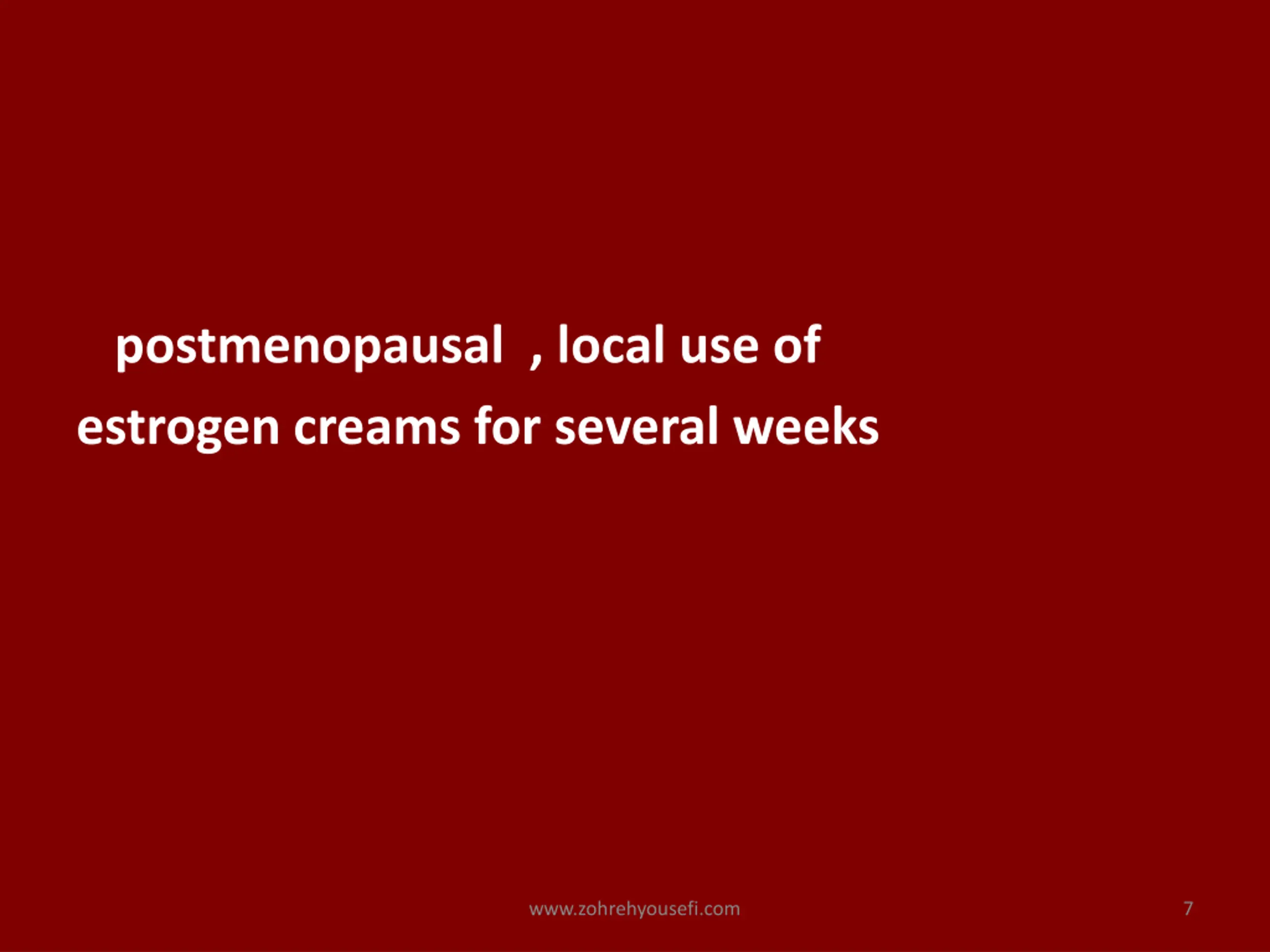 postmenopausal , local use of estrogen creams for several weeks www.zohrehyousefi.com 7