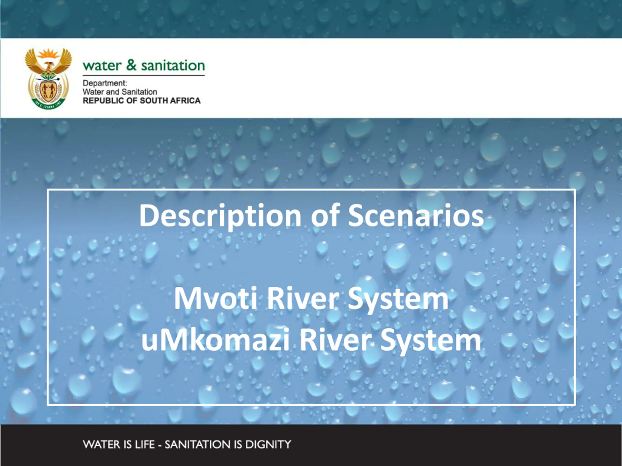 DWA CORPORATE IDENTITY Presented by: Johan Maree Deputy Director: Media Production Description of Scenarios 12 December 2012 Mvoti River System uMkomazi River System