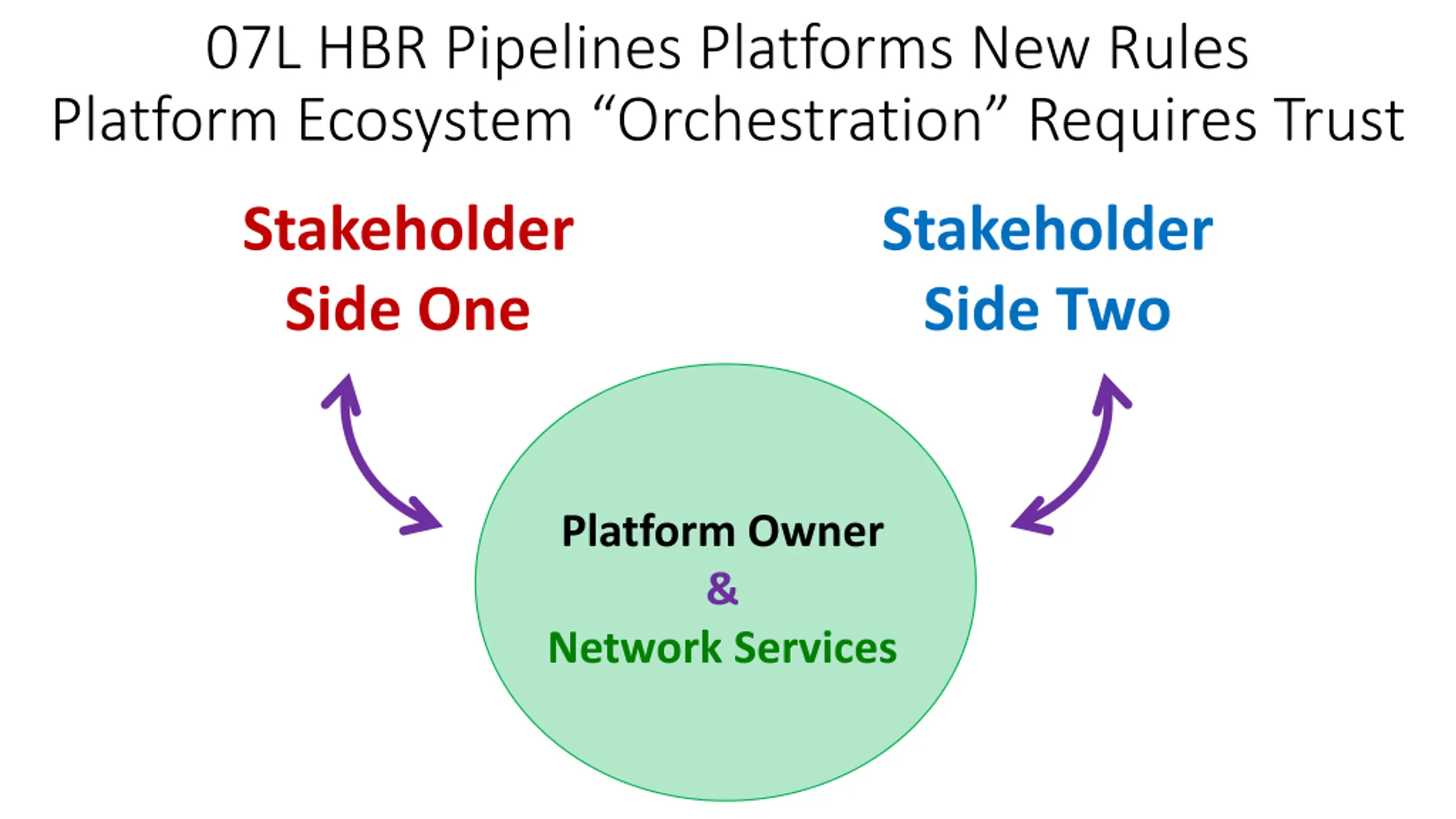 07L HBR Pipelines Platforms New Rules Platform Ecosystem Orchestration Requires Trust Stakeholder Side One Stakeholder Side Two Platform Owner & Network Services