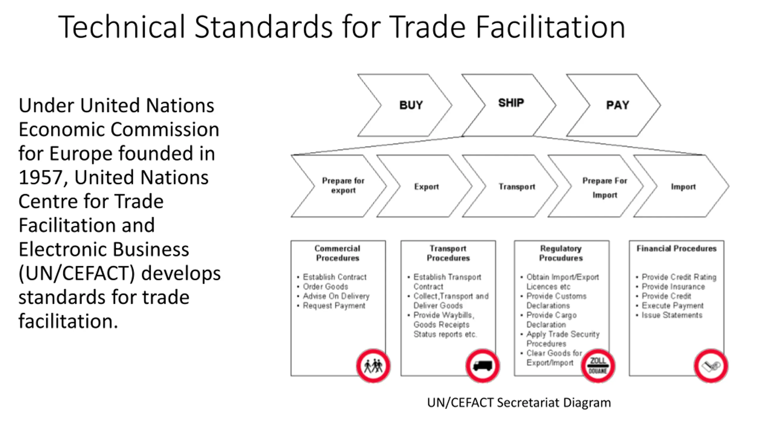 Technical Standards for Trade Facilitation Under United Nations Economic Commission for Europe founded in 1957, United Nations Centre for Trade Facilitation and Electronic Business (UN/CEFACT) develops standards for trade facilitation. UN/CEFACT Secretariat Diagram
