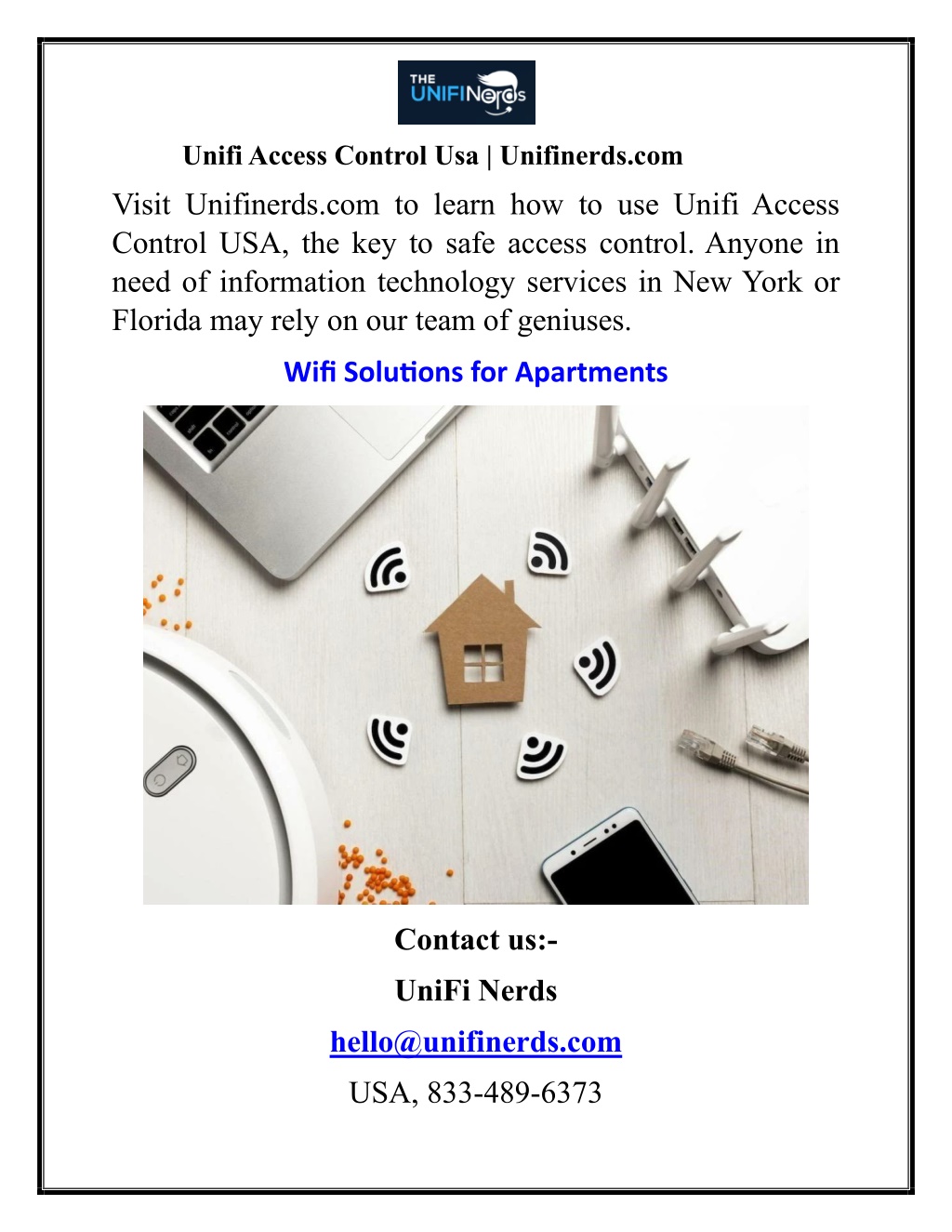 Unifi Access Control Usa | Unifinerds.com Visit Unifinerds.com to learn how to use Unifi Access Control USA, the key to safe access control. Anyone in need of information technology services in New York or Florida may rely on our team of geniuses. Wifi Solutions for Apartments Contact us:- UniFi Nerds hello@unifinerds.com USA, 833-489-6373