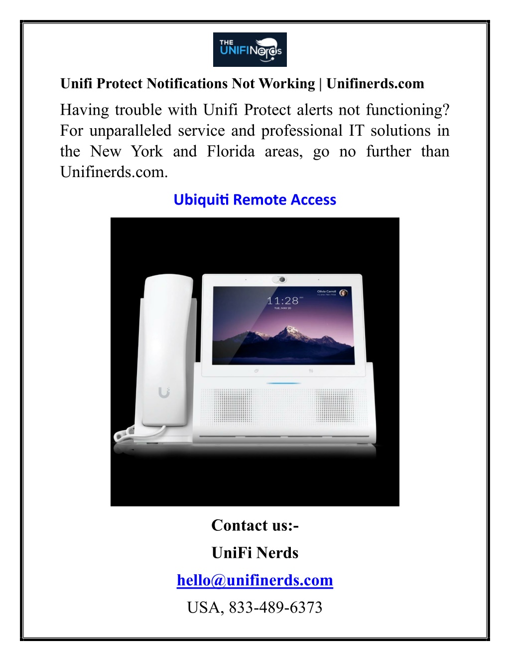 Unifi Protect Notifications Not Working | Unifinerds.com Having trouble with Unifi Protect alerts not functioning? For unparalleled service and professional IT solutions in the New York and Florida areas, go no further than Unifinerds.com. Ubiquiti Remote Access Contact us:- UniFi Nerds hello@unifinerds.com USA, 833-489-6373