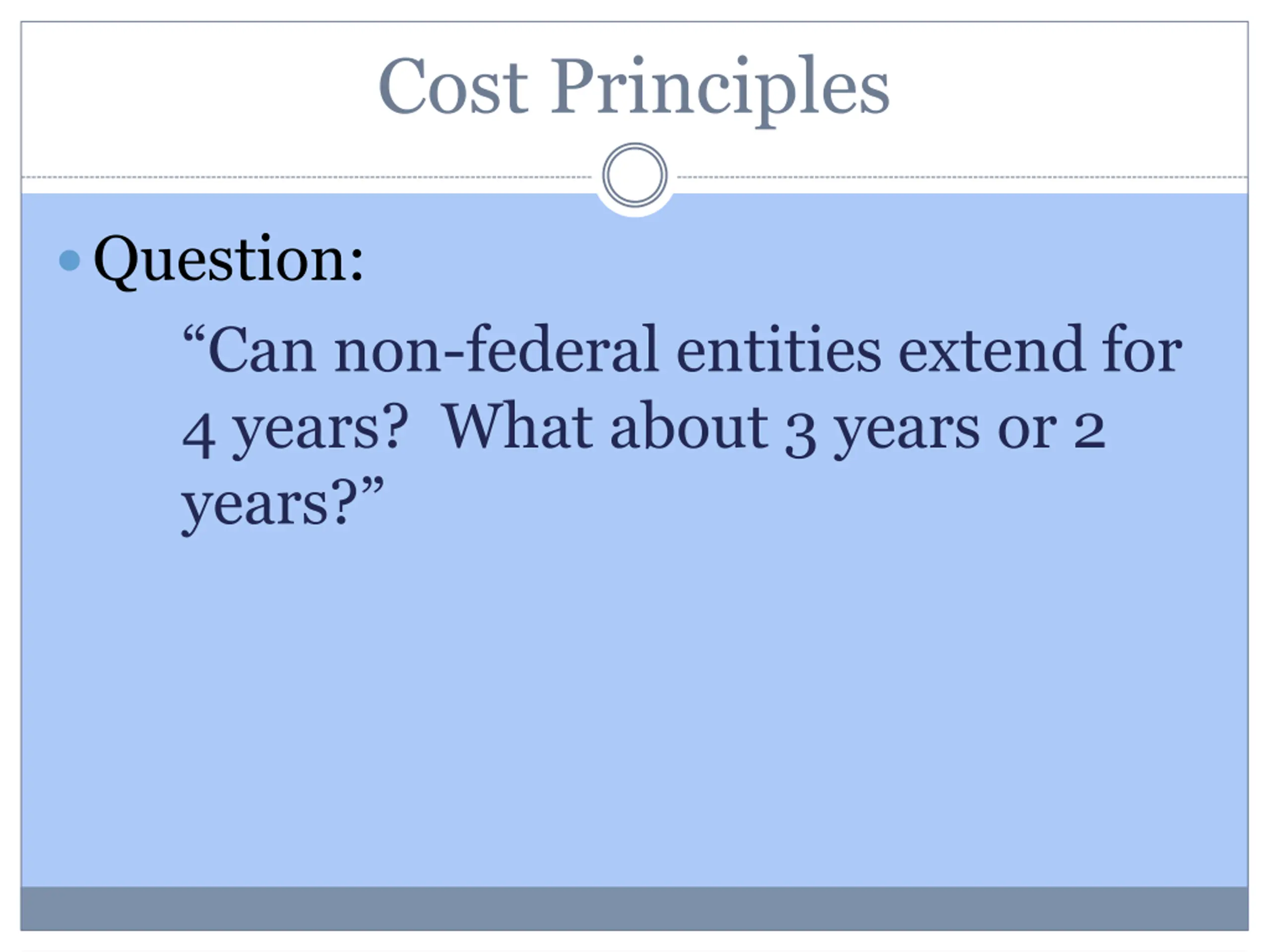 Cost Principles Question: Can non-federal entities extend for 4 years? What about 3 years or 2 years?