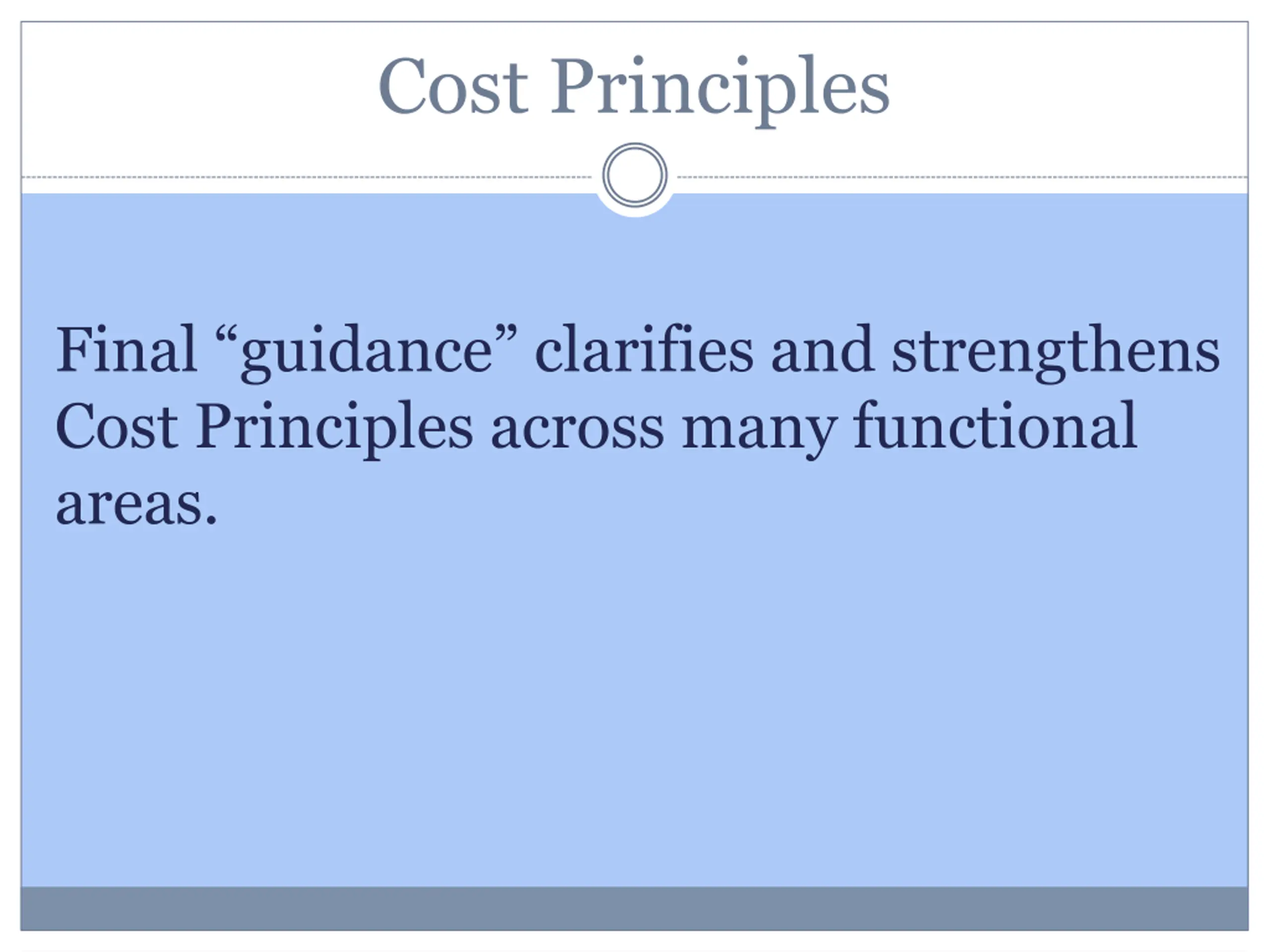 Cost Principles Final guidance clarifies and strengthens Cost Principles across many functional areas.