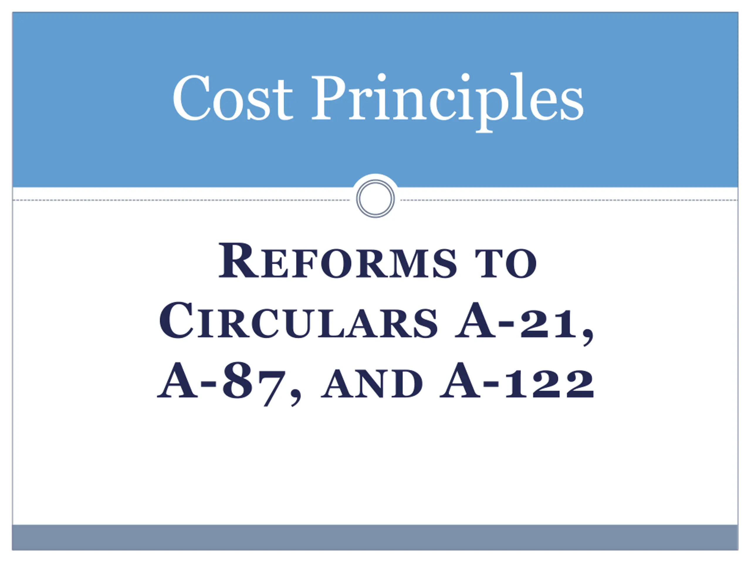 Cost Principles REFORMSTO CIRCULARS A-21, A-87, AND A-122