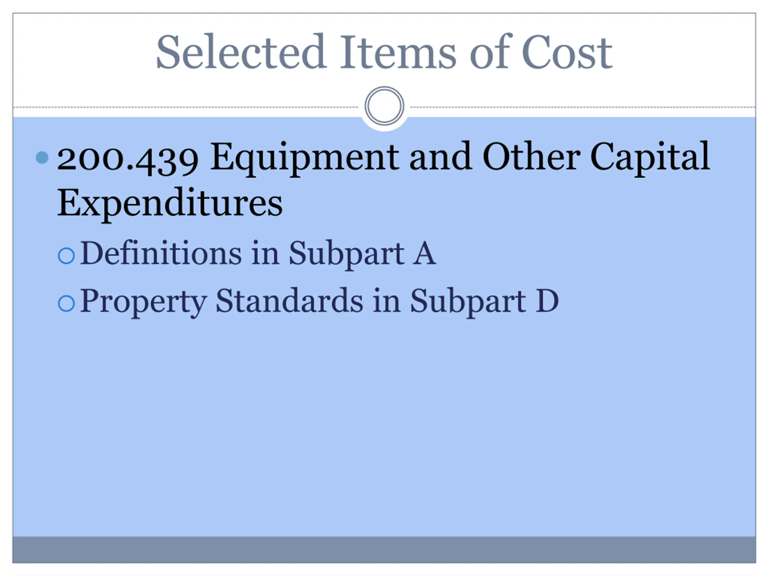 Selected Items of Cost 200.439 Equipment and Other Capital Expenditures Definitions in Subpart A Property Standards in Subpart D