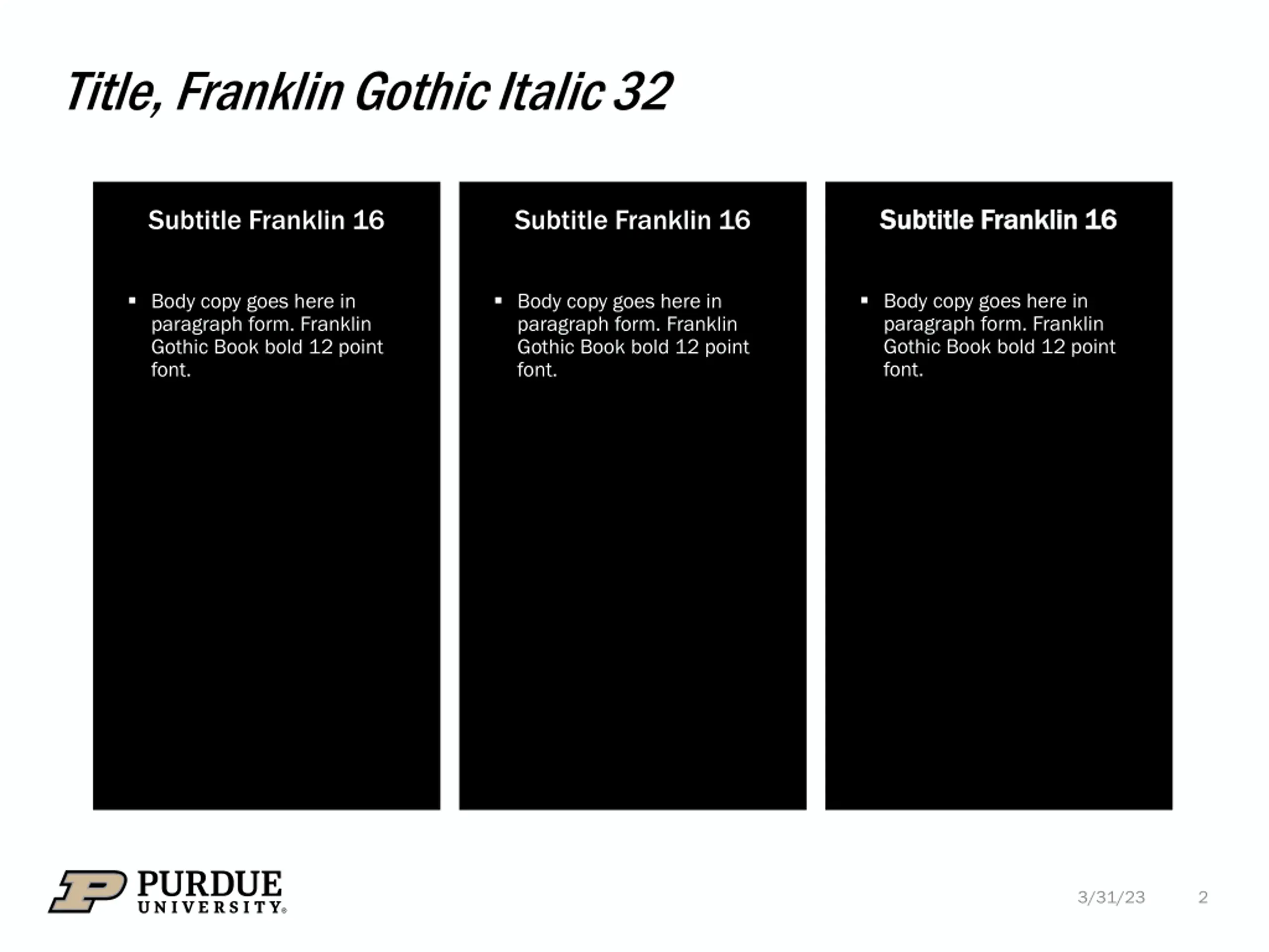 Title, Franklin Gothic Italic 32 Subtitle Franklin 16 Subtitle Franklin 16 Subtitle Franklin 16 Subtitle Franklin 16 Body copy goes here in paragraph form. Franklin Gothic Book bold 12 point font. Body copy goes here in paragraph form. Franklin Gothic Book bold 12 point font. Body copy goes here in paragraph form. Franklin Gothic Book bold 12 point font. 3/31/23 2