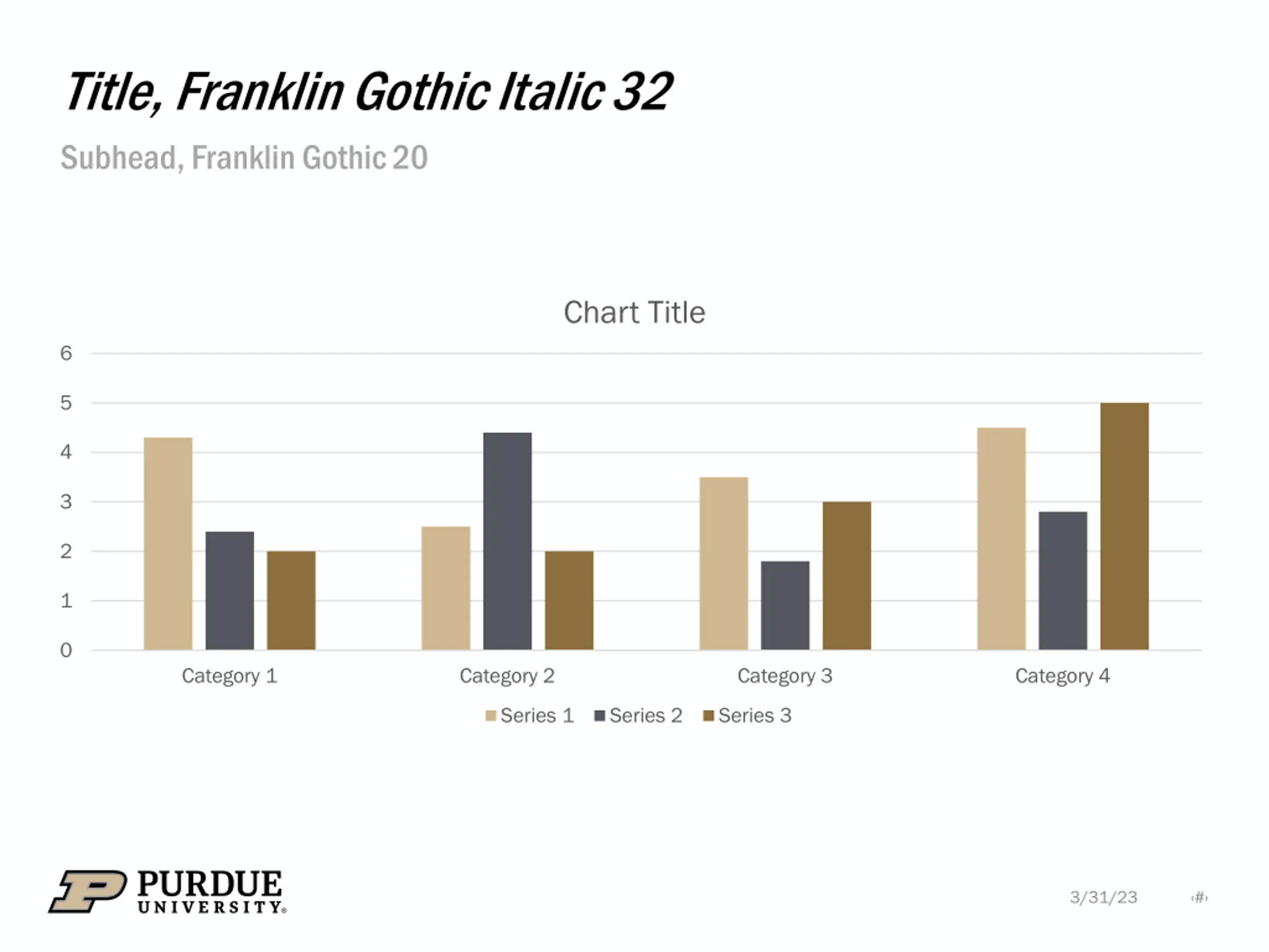 Title, Franklin Gothic Italic 32 Subhead, Franklin Gothic 20 Chart Title 6 5 4 3 2 1 0 Category 1 Category 2 Category 3 Category 4 Series 1 Series 2 Series 3 3/31/23 #