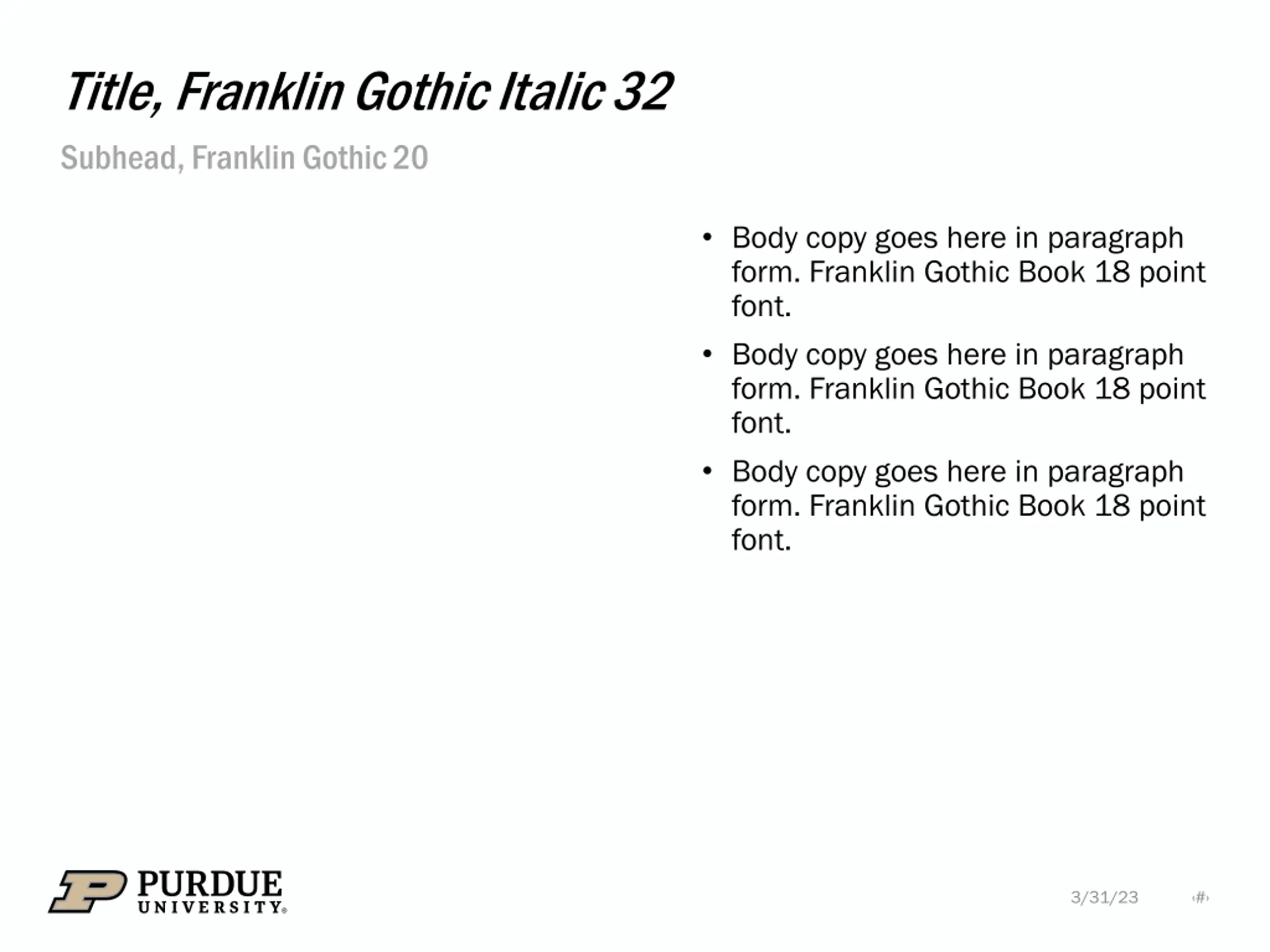 Title, Franklin Gothic Italic 32 Subhead, Franklin Gothic 20 Body copy goes here in paragraph form. Franklin Gothic Book 18 point font. Body copy goes here in paragraph form. Franklin Gothic Book 18 point font. Body copy goes here in paragraph form. Franklin Gothic Book 18 point font. 3/31/23 #