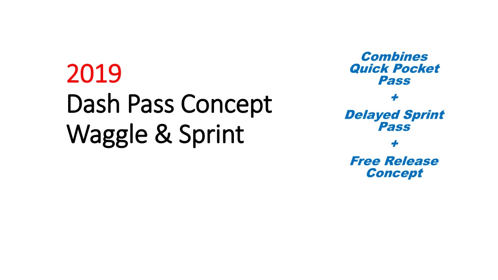 Combines Quick Pocket Pass + Delayed Sprint Pass + Free Release Concept 2019 2019 Dash Pass Concept Dash Pass Concept Waggle Waggle & Sprint & Sprint