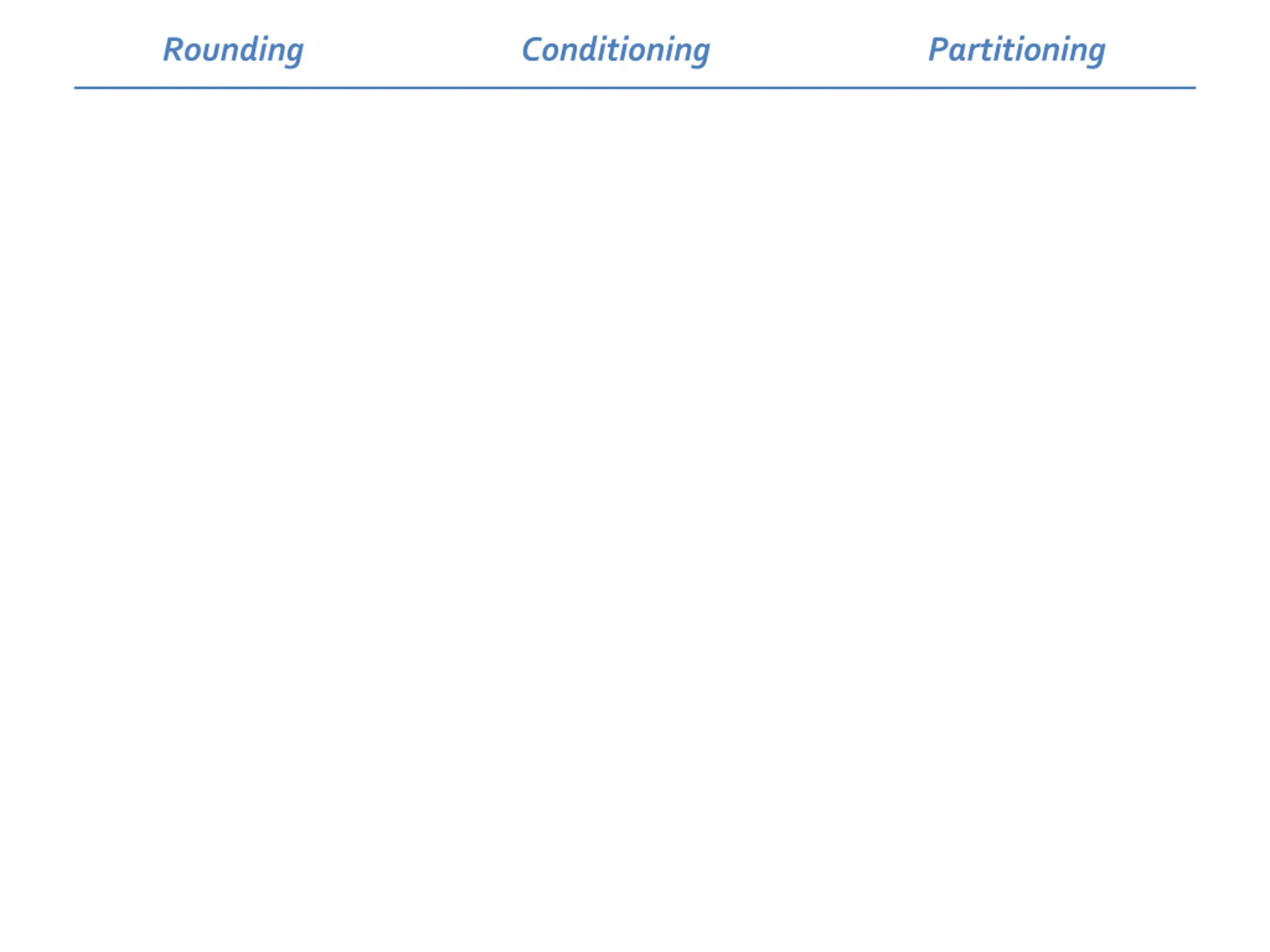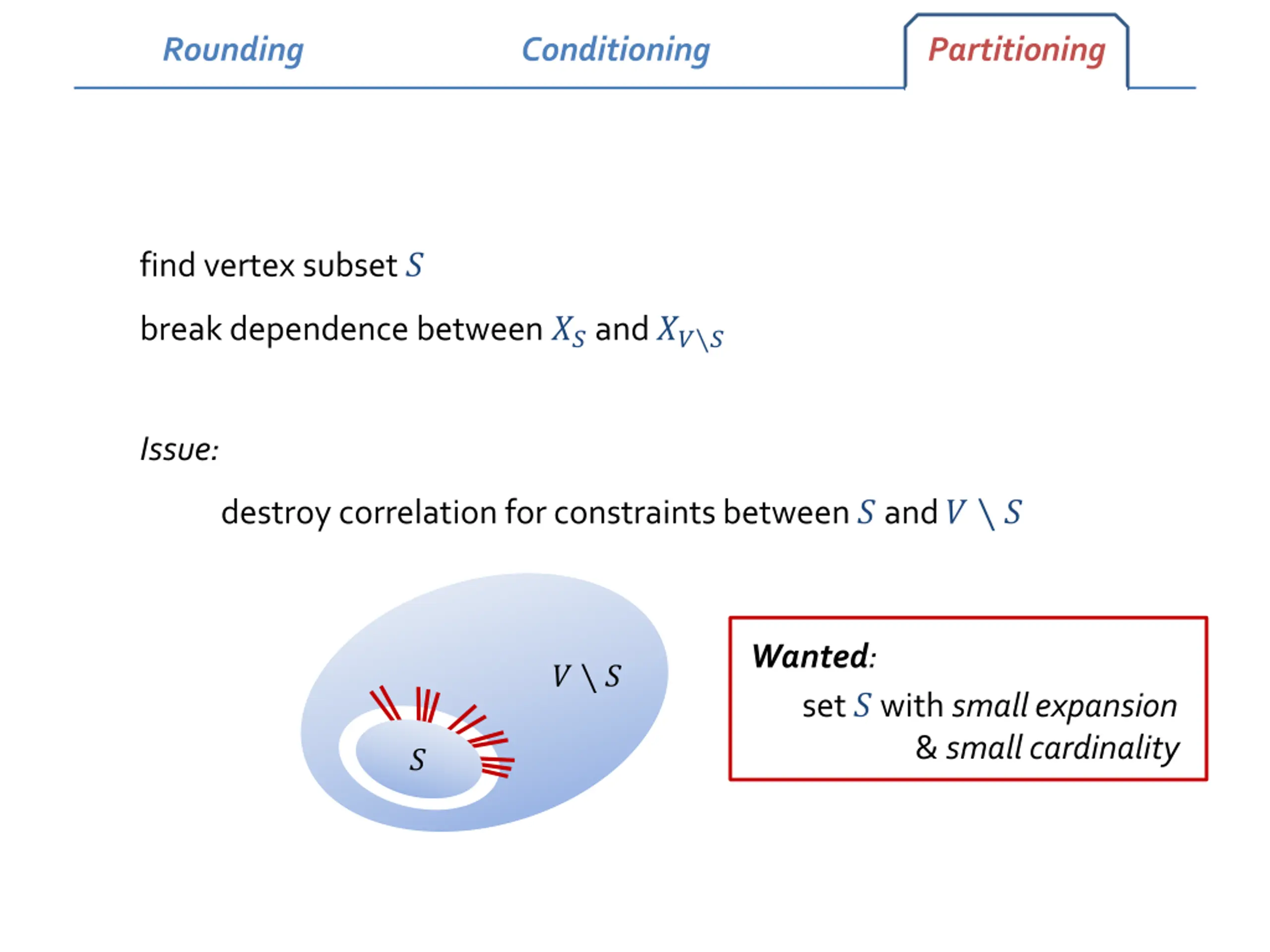 Rounding Conditioning Partitioning find vertex subset ? break dependence between ?? and ?? ? Issue: destroy correlation for constraints between ? and ? ? Wanted: set ? with small expansion & small cardinality ? ? ?