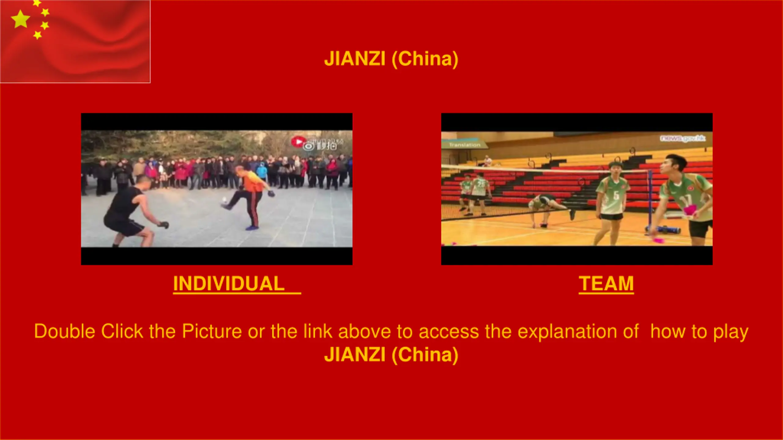 JIANZI (China) INDIVIDUAL TEAM Double Click the Picture or the link above to access the explanation of how to play JIANZI (China)