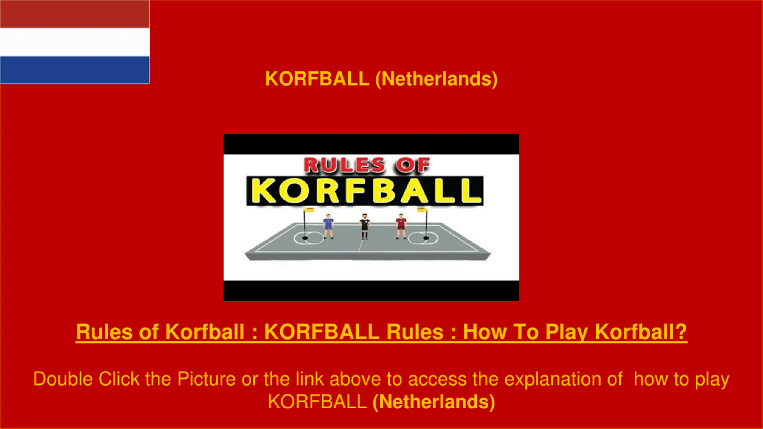 KORFBALL (Netherlands) Rules of Korfball : KORFBALL Rules : How To Play Korfball? Double Click the Picture or the link above to access the explanation of how to play KORFBALL (Netherlands)