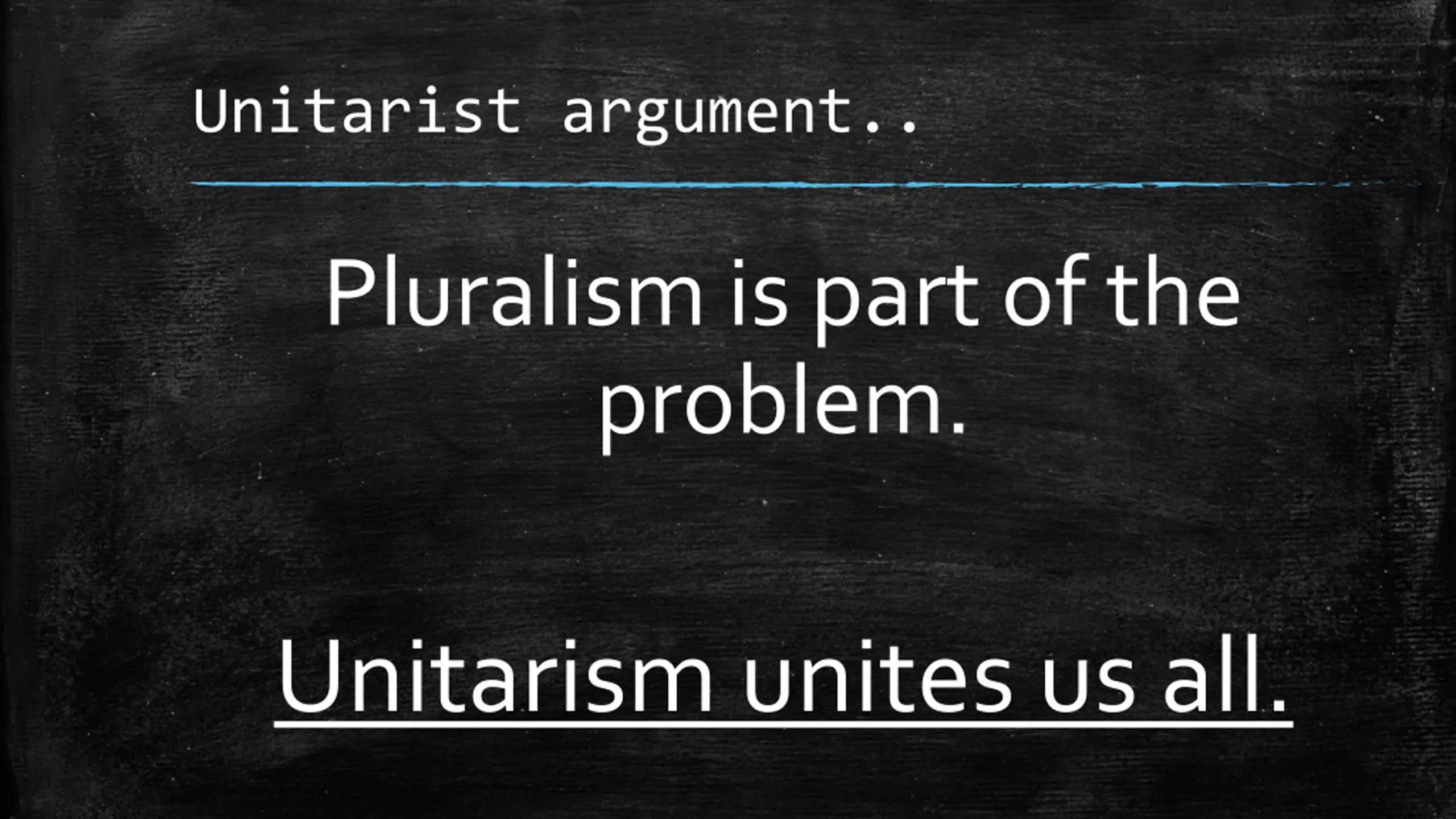Unitarist argument.. Pluralism is part of the problem. Unitarism unites us all.