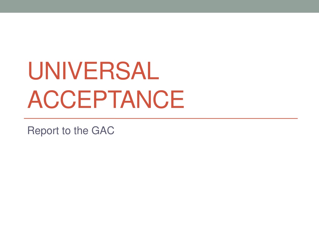 UNIVERSAL ACCEPTANCE Report to the GAC