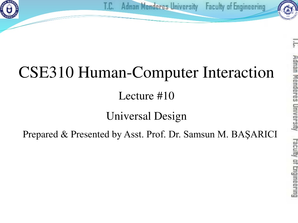 CSE310 Human-Computer Interaction Lecture #10 Universal Design Prepared & Presented byAsst. Prof. Dr. Samsun M. BA ARICI