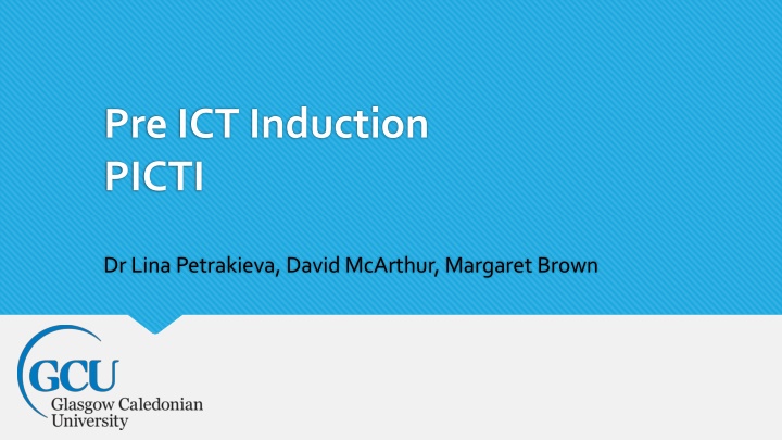 Pre ICT Induction PICTI Dr Lina Petrakieva, David McArthur, Margaret Brown