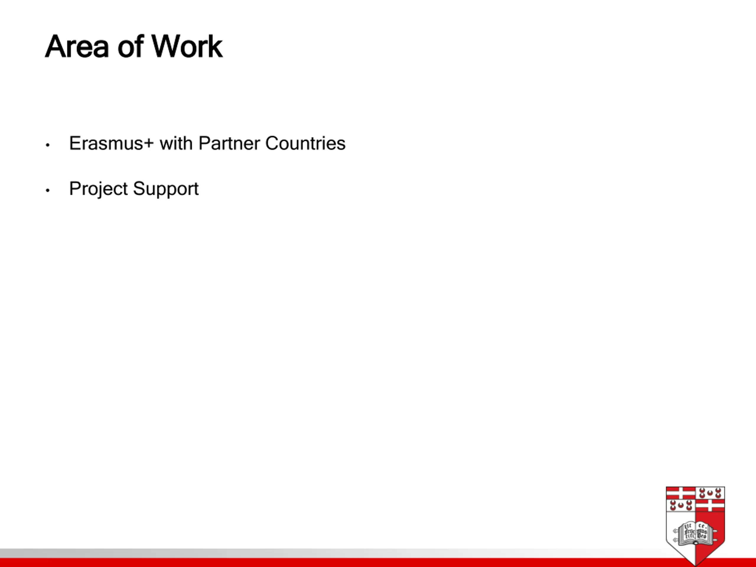 Area of Work Area of Work Erasmus+ with Partner Countries Project Support