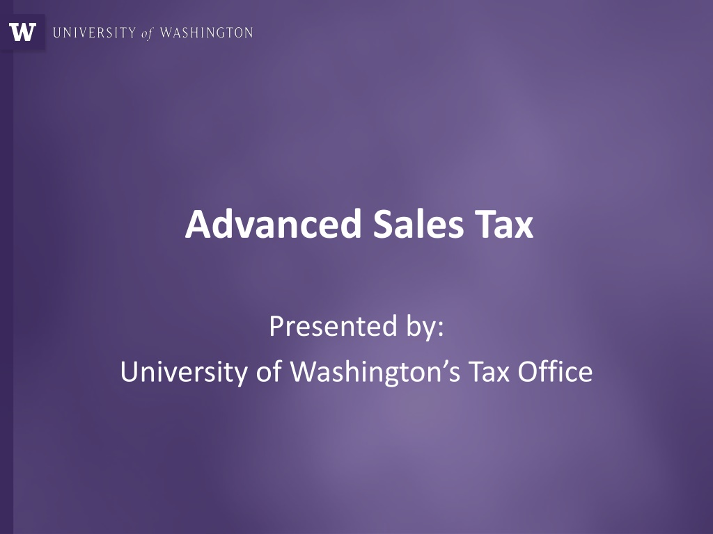 Advanced Sales Tax Presented by: University of Washington s Tax Office