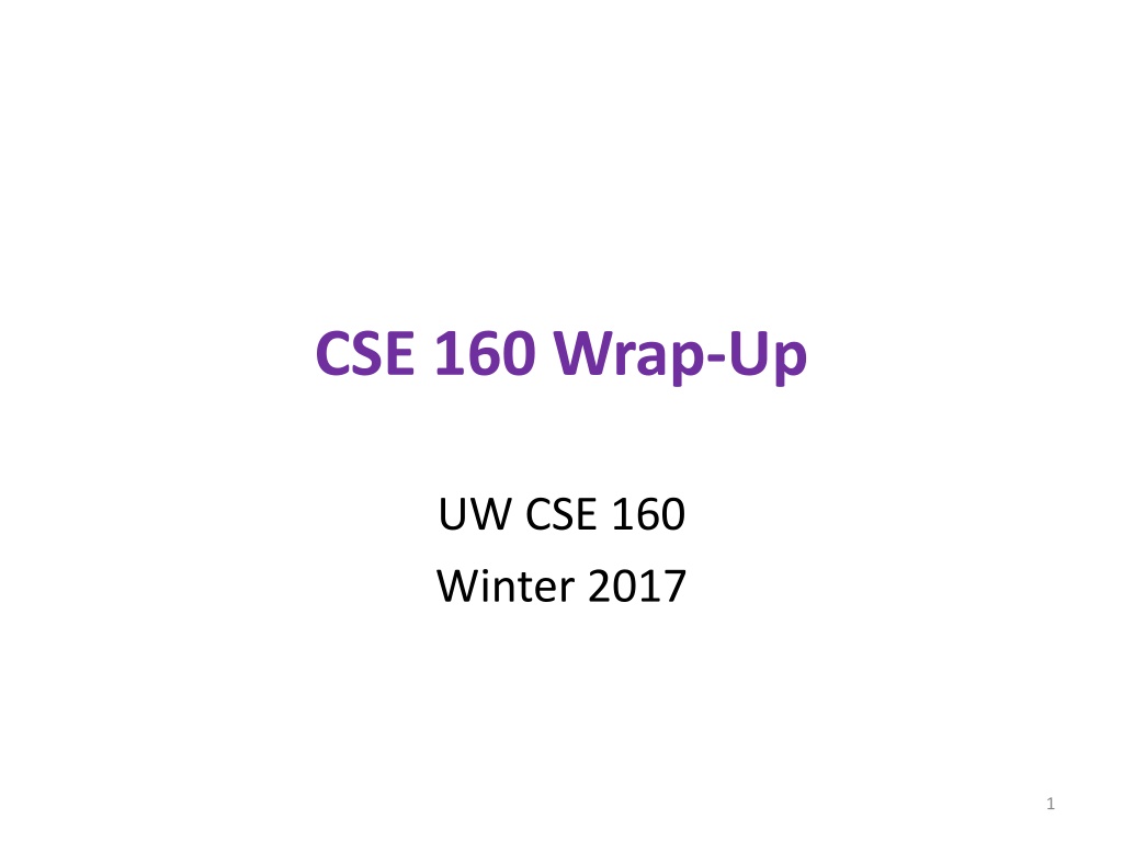 CSE 160 Wrap-Up UW CSE 160 Winter 2017 1