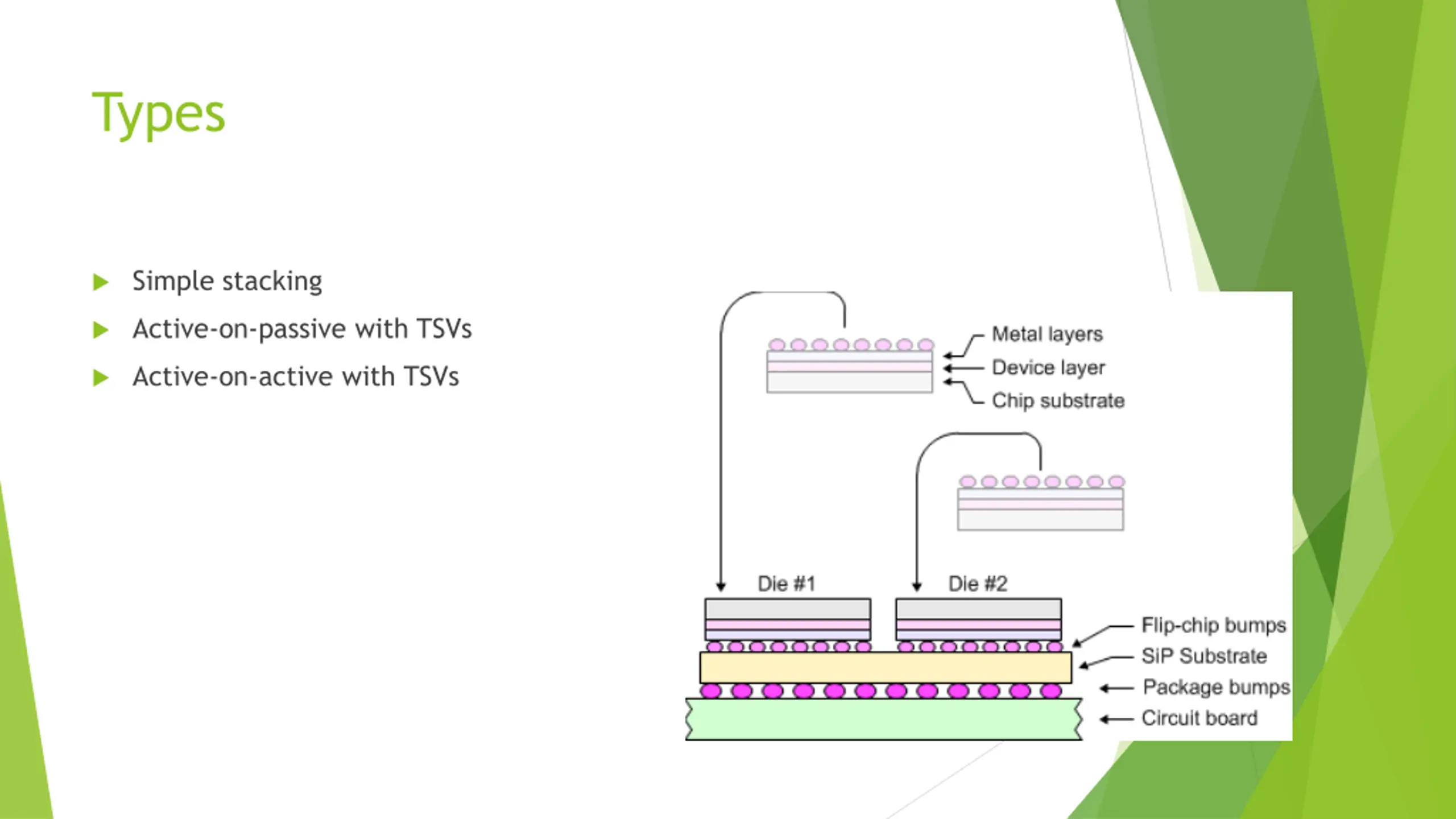 Types Simple stacking Active-on-passive with TSVs Active-on-active with TSVs