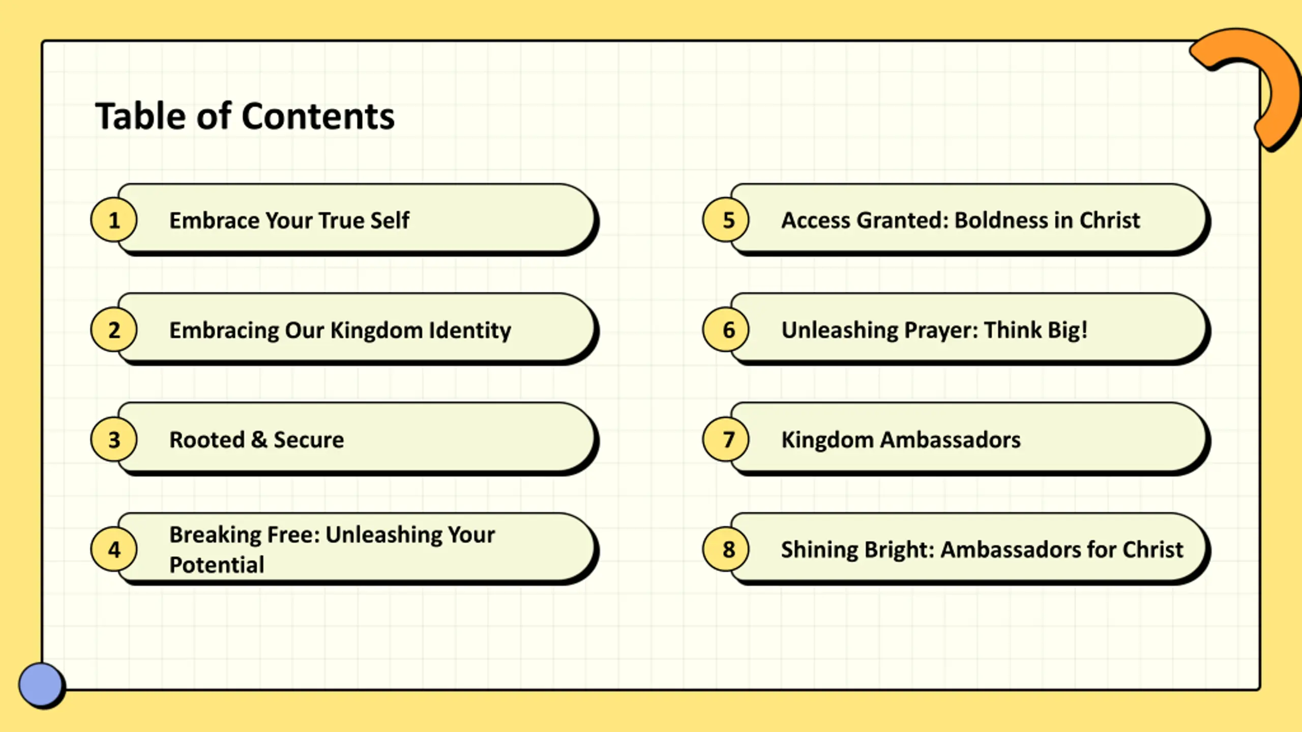 Uncover your true self and embrace your God-given potential in this empowering journey from being accepted to becoming ambassadors of God's kingdom. Discover how to break free from limitations, embrace boldness in Christ, and shine bright as kingdom ambassadors. Embrace your identity, rooted in love and purpose, and unlock the transformative power of grace. Explore the unique roles designed for you within God's grand narrative, and secure your grounded identity amidst worldly drifts. This guide will help you unleash your potential and live confidently within God's household.