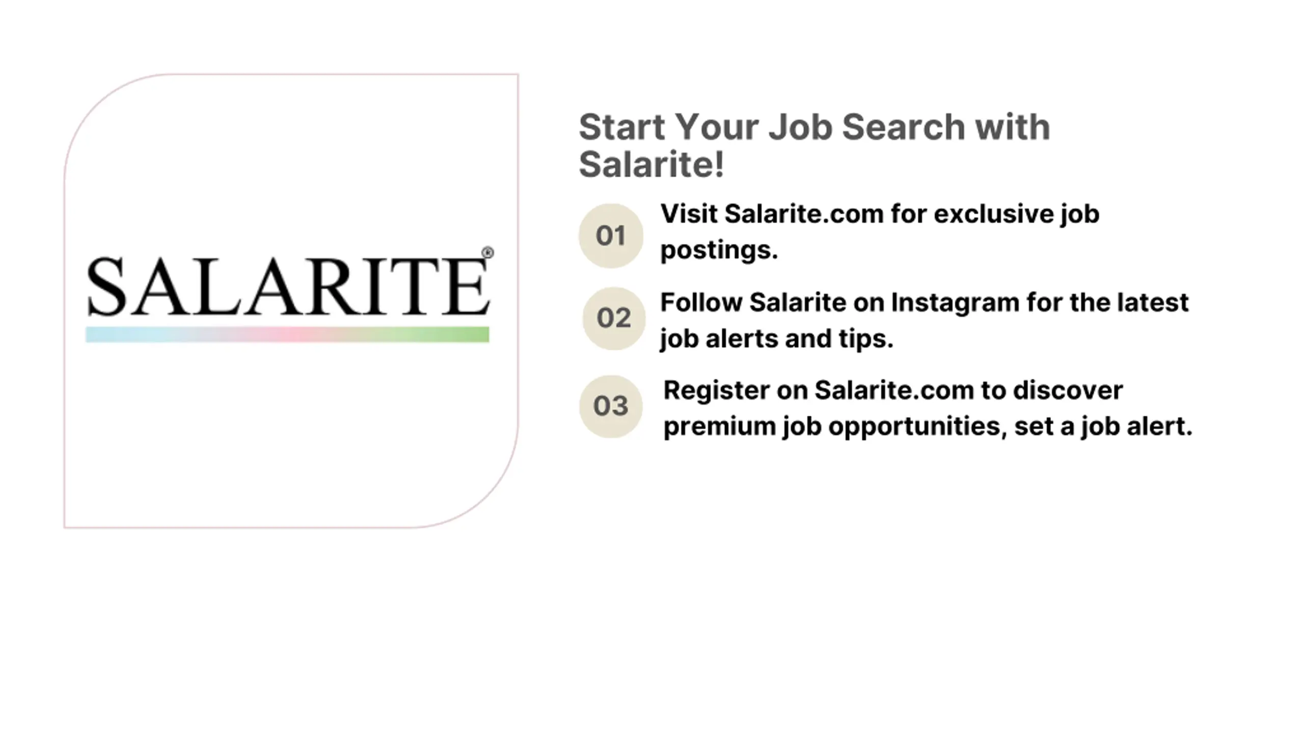 StartYourJobSearchwith Salarite! VisitSalarite.comforexclusivejob postings. 01 FollowSalariteon Instagramforthelatest jobalertsandtips. 02 RegisteronSalarite.comtodiscover premiumjobopportunities,setajobalert. 03