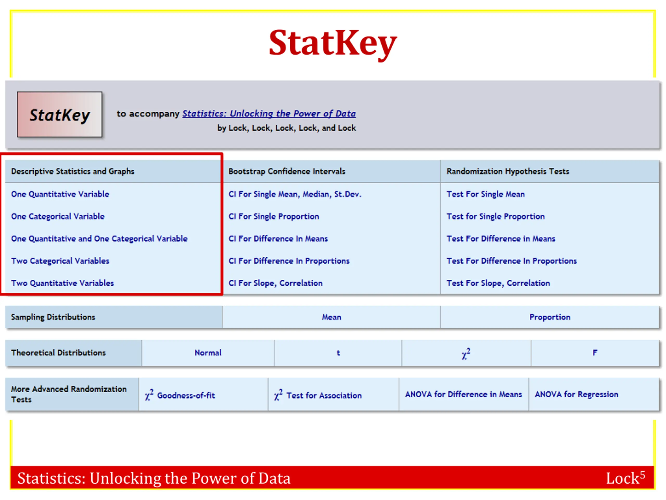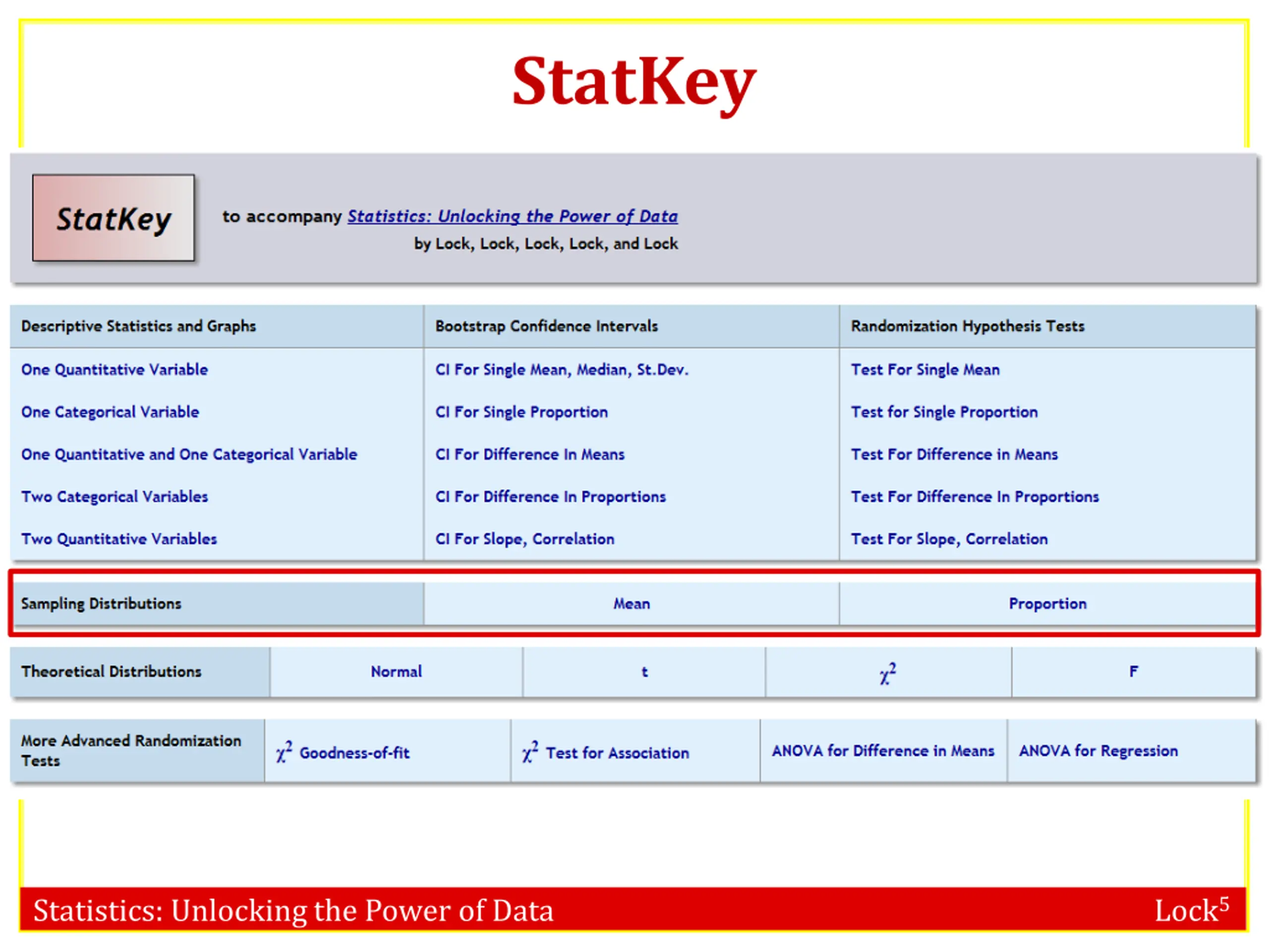 StatKey www.lock5stat.com/statkey Statistics: Unlocking the Power of Data Lock5