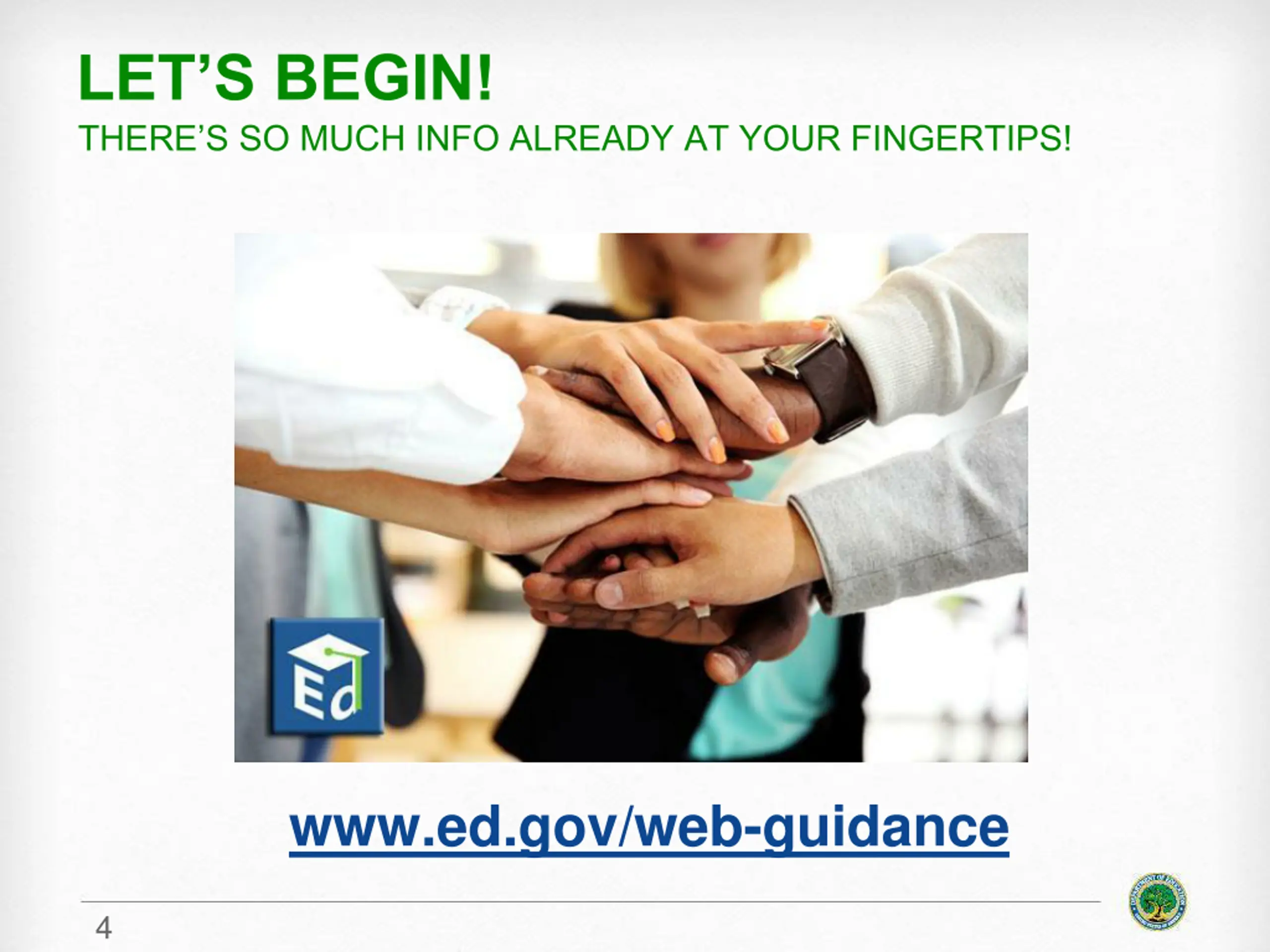 LETS BEGIN! THERE S SO MUCH INFO ALREADY AT YOUR FINGERTIPS! www.ed.gov/web-guidance 4