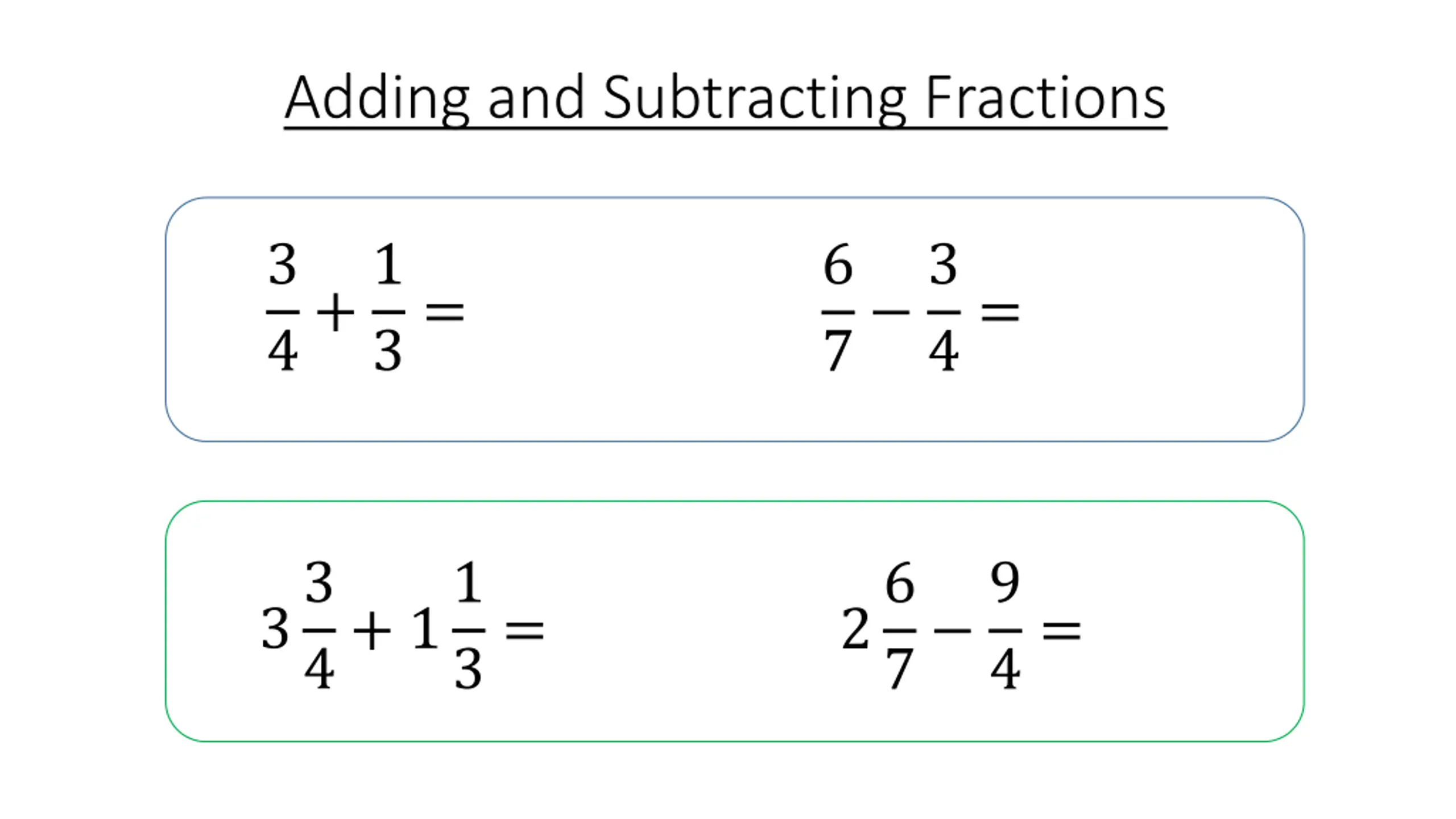 Adding and Subtracting Fractions 3 4+1 6 7 3 3= 4= 33 4+ 11 26 7 9 3= 4=