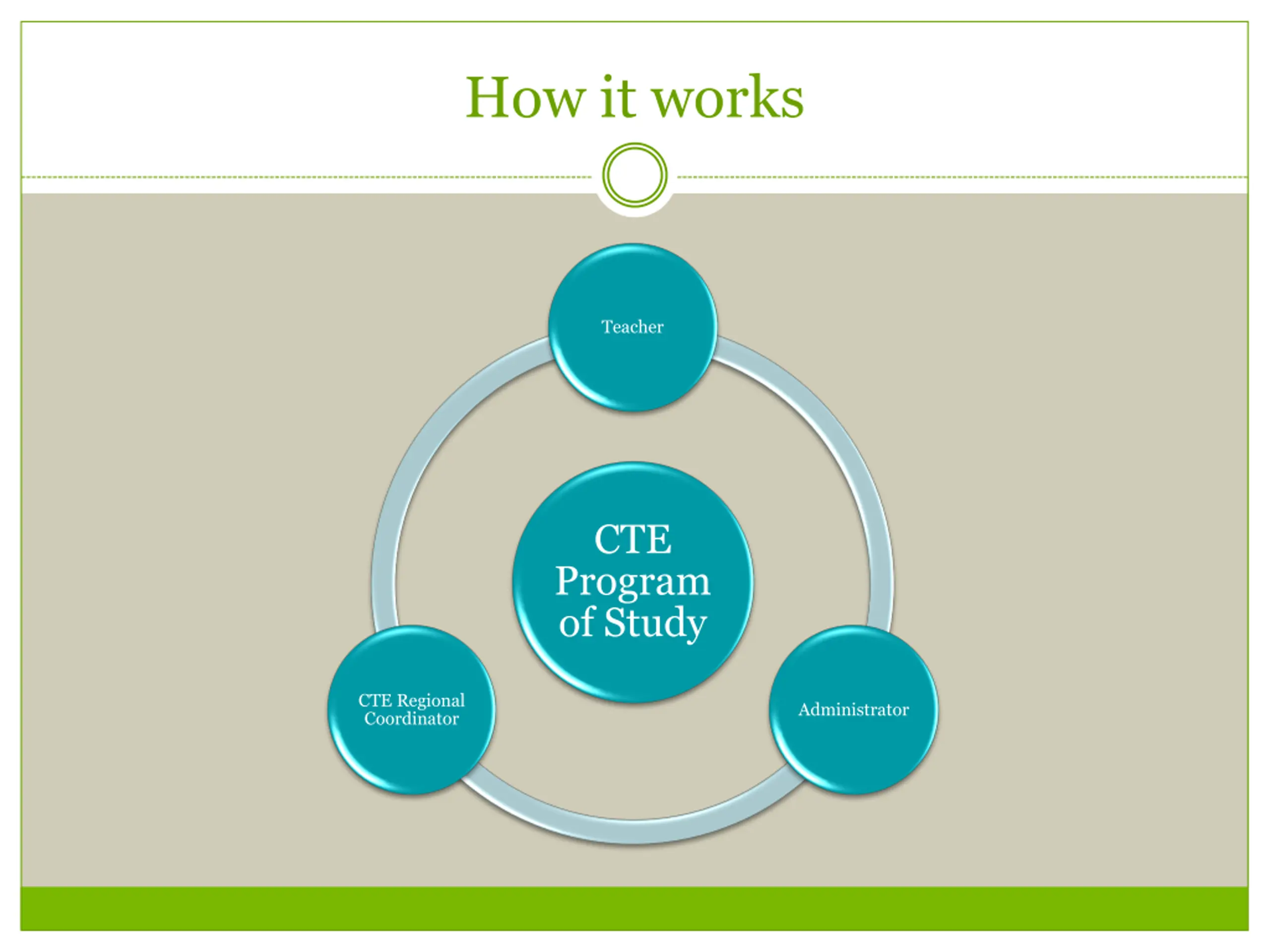 How it works Teacher CTE Program of Study CTE Regional Coordinator Administrator