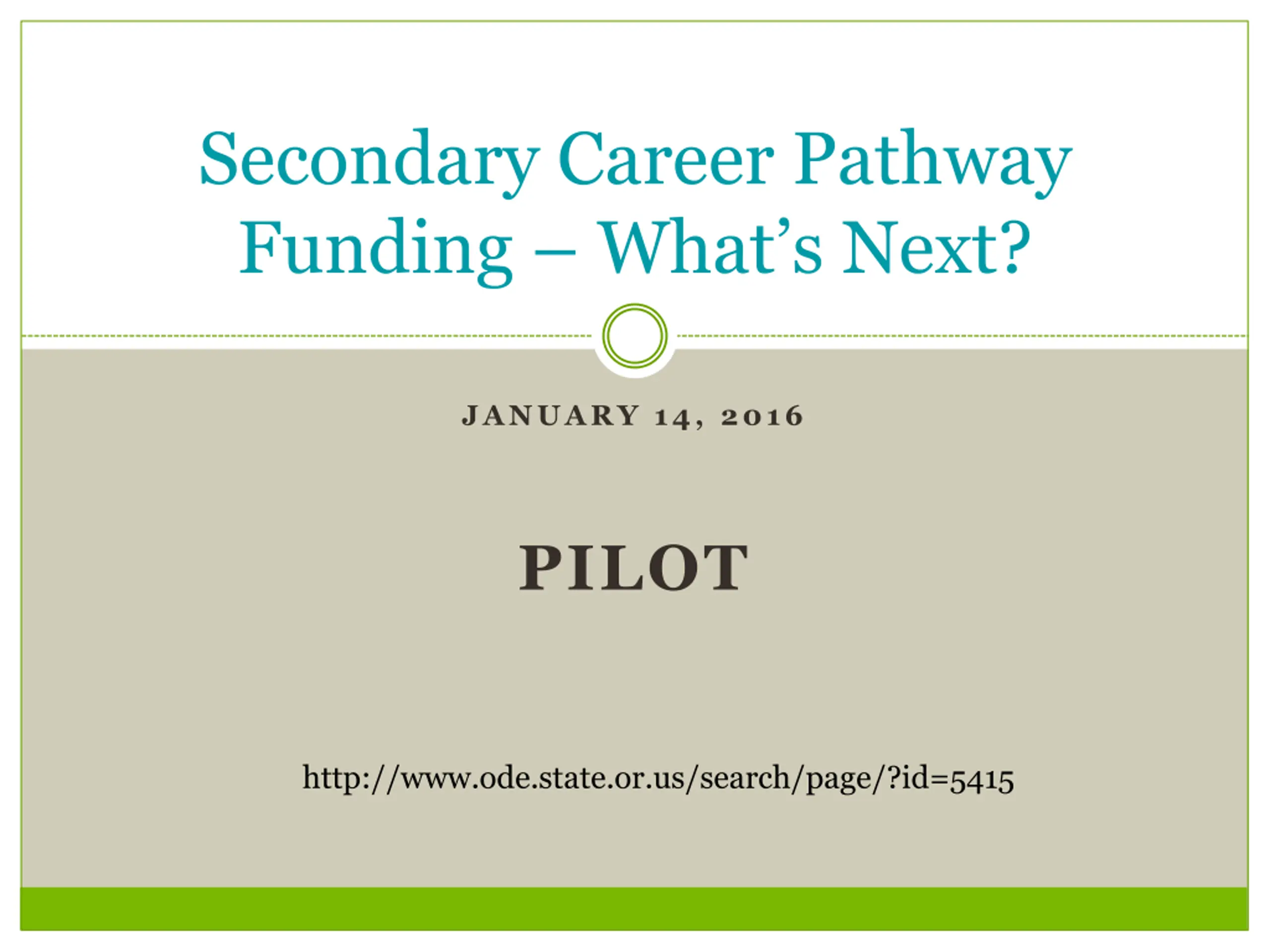 Secondary Career Pathway Funding What s Next? JANUARY 14, 2016 PILOT http://www.ode.state.or.us/search/page/?id=5415