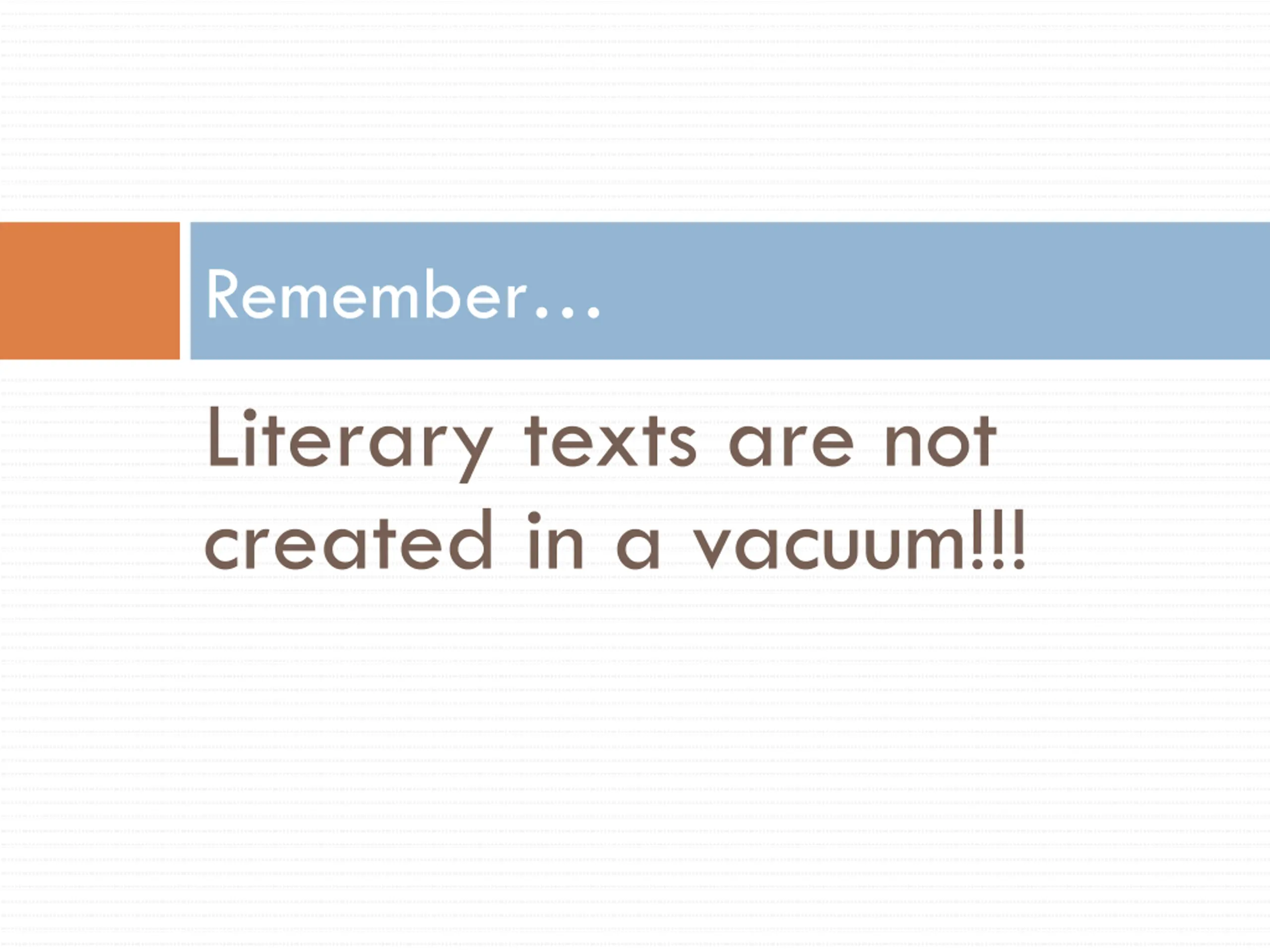 Remember Literary texts are not created in a vacuum!!!
