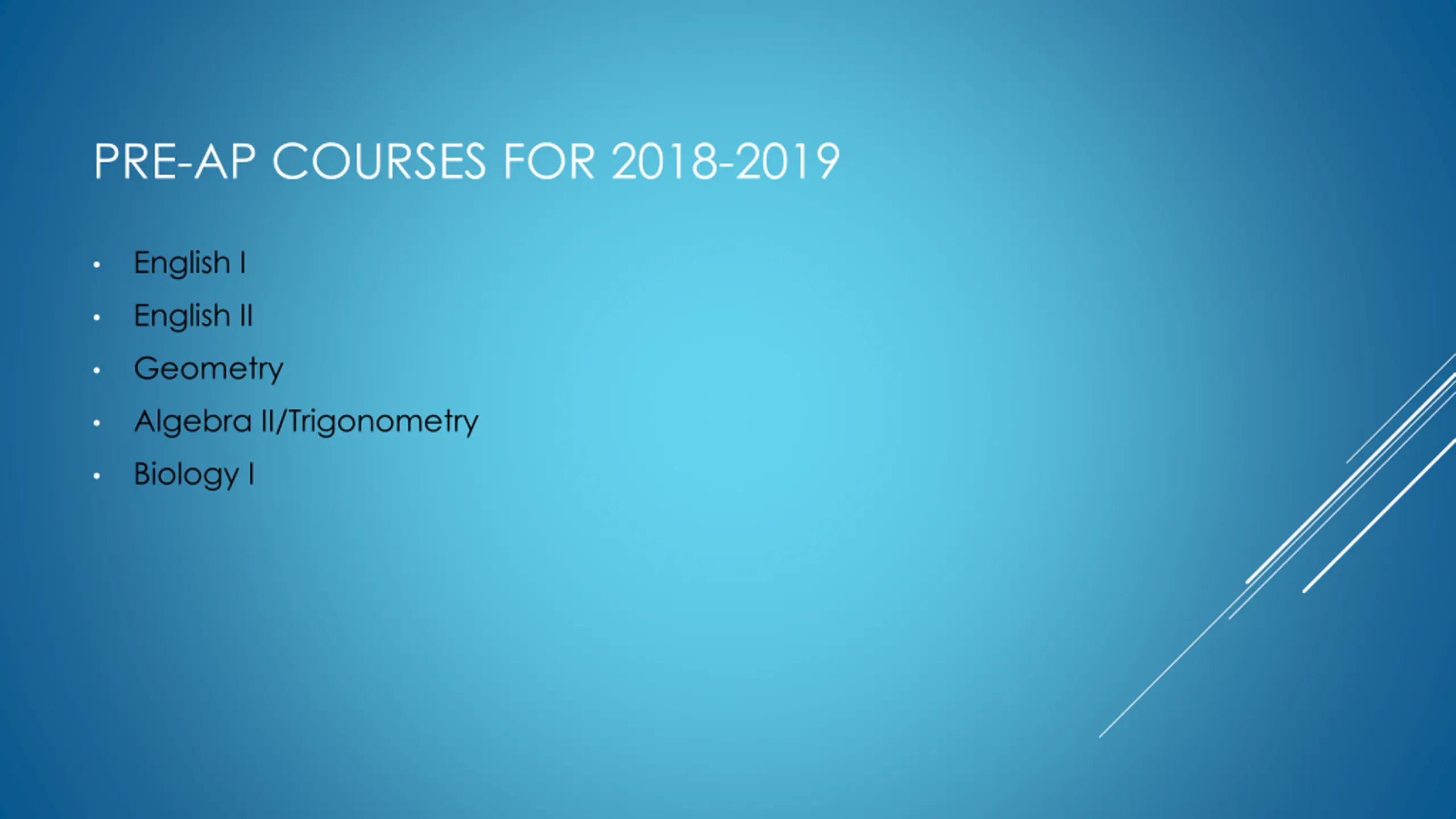 PRE-AP COURSES FOR 2018-2019 English I English II Geometry Algebra II/Trigonometry Biology I