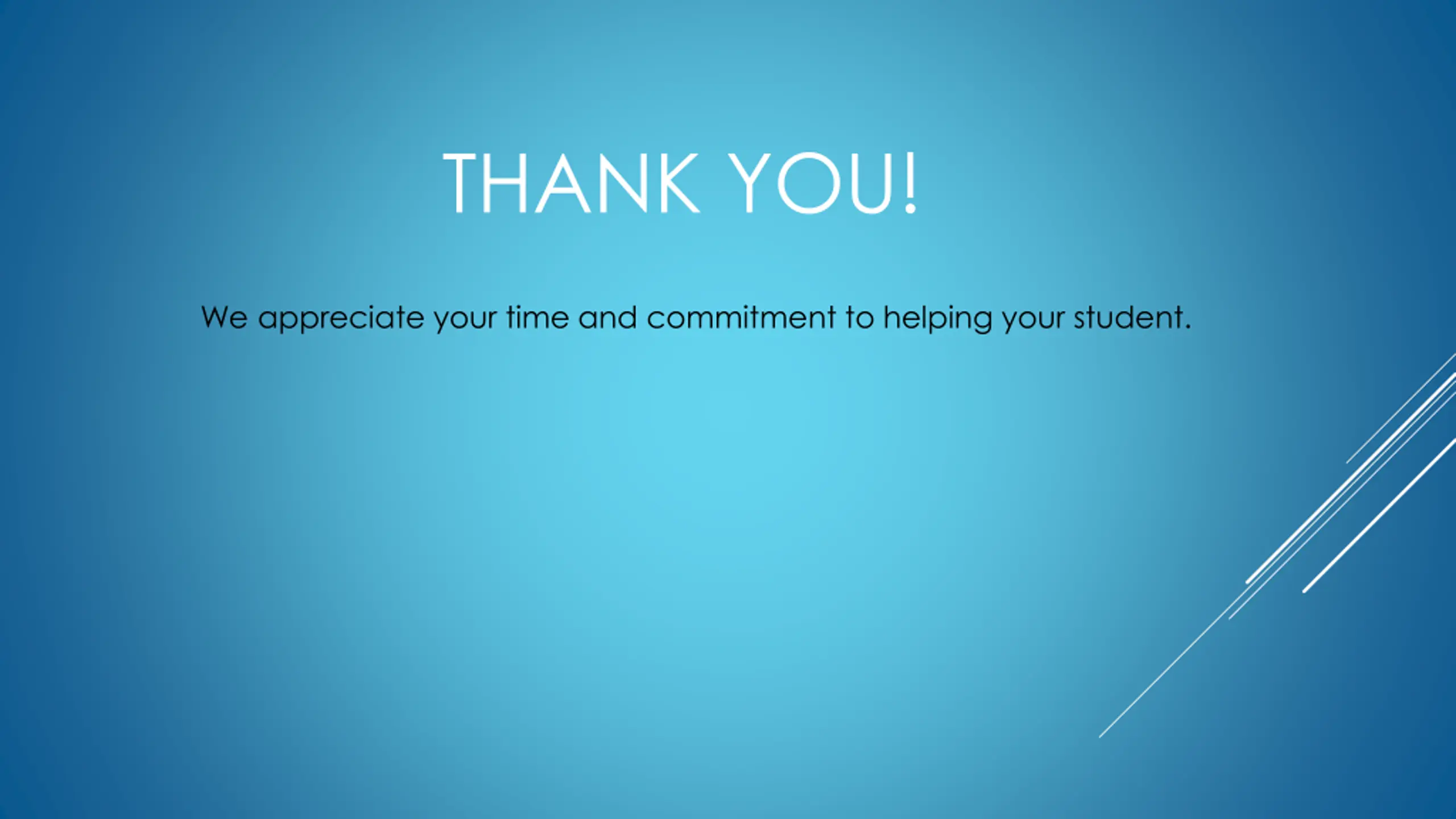 THANK YOU! We appreciate your time and commitment to helping your student.