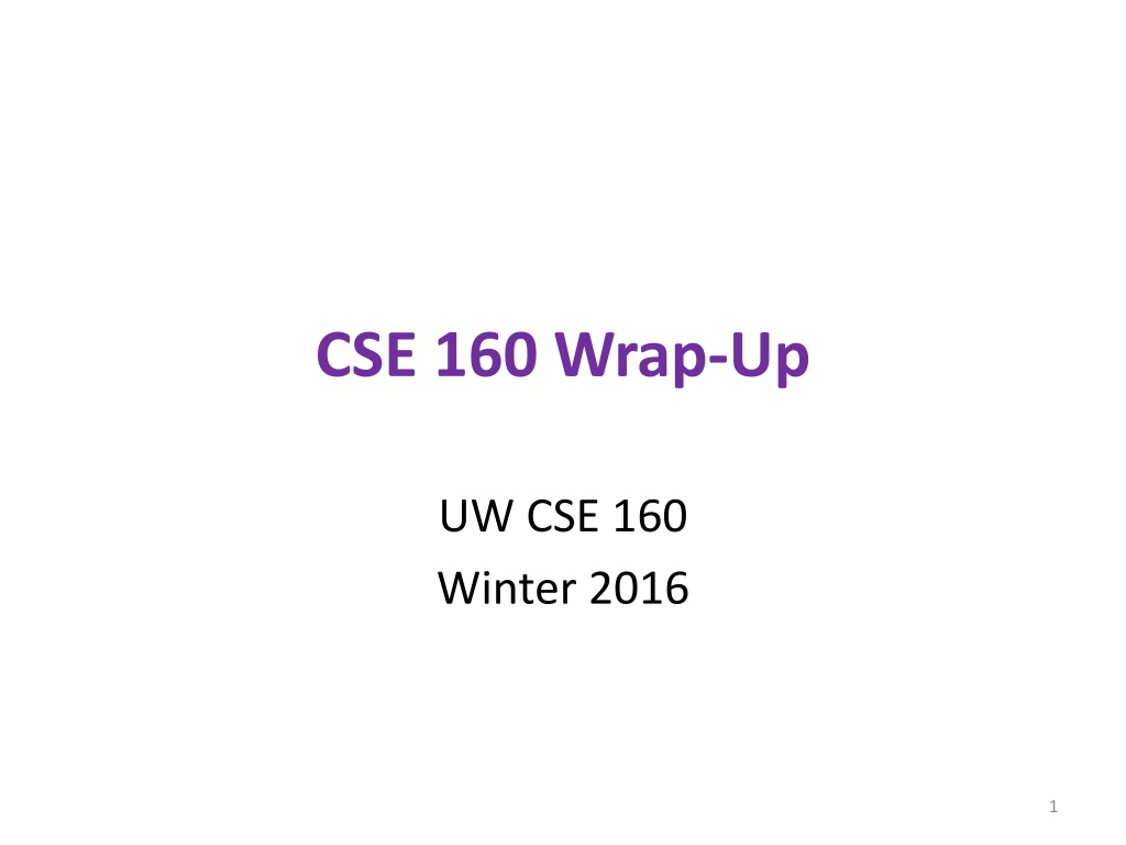 CSE 160 Wrap-Up UW CSE 160 Winter 2016 1