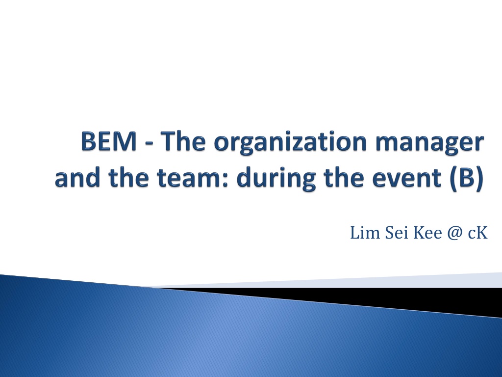 Events management has to be effective, and event managers must be good communicators and good delegators in situations that may be constantly changing. Important NOTE: Drink enough so you don t dehydrate Eat enough to keep your blood sugar levels up Wear the most comfortable pair of shoes