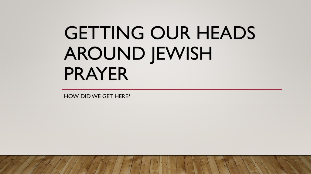 GETTING OUR HEADS AROUND JEWISH PRAYER HOW DID WE GET HERE?