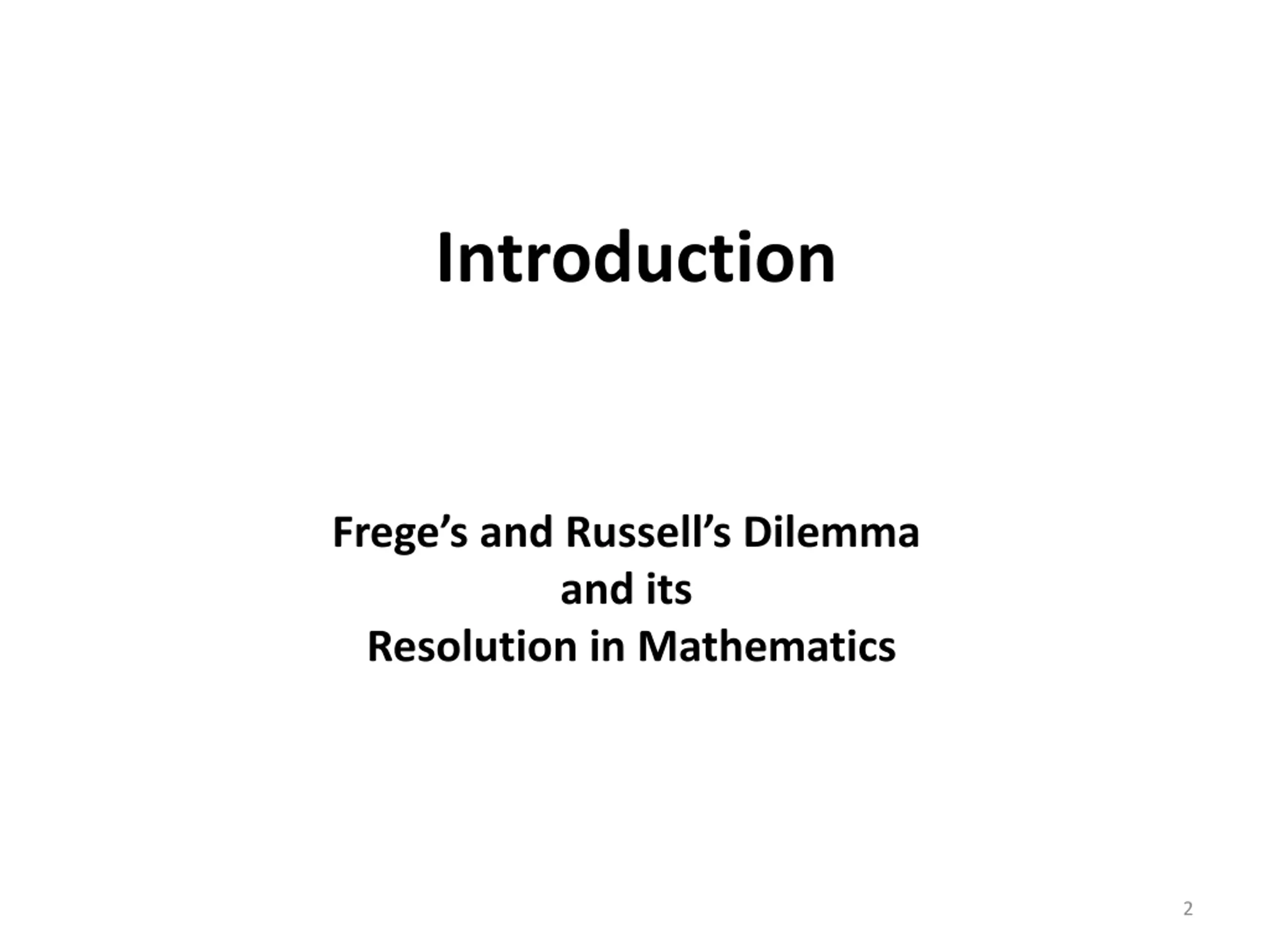 Introduction Frege sand Russell s Dilemma and its Resolution in Mathematics 2