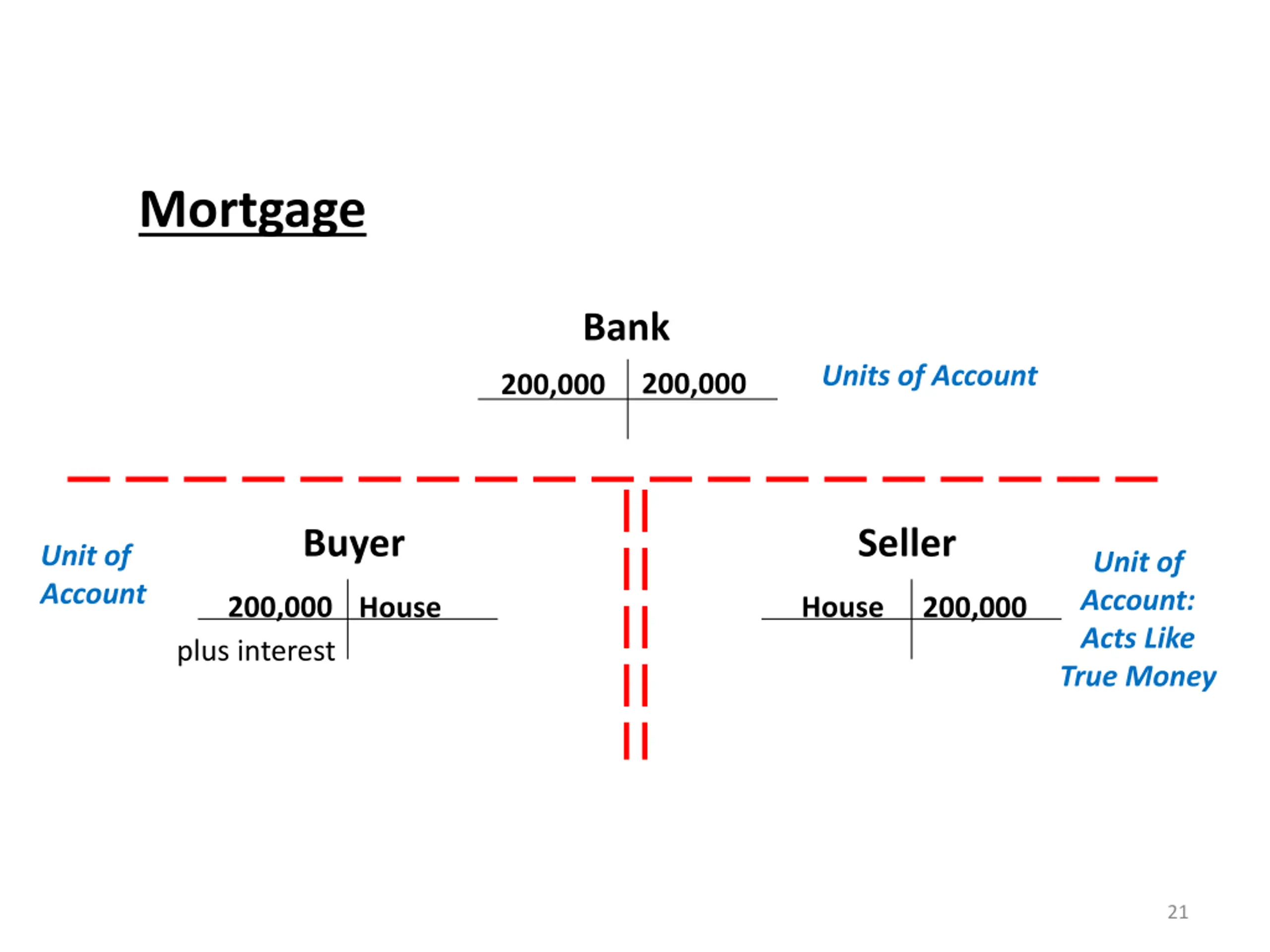 Mortgage Bank Units of Account 200,000 200,000 Buyer Seller Unit of Account Unit of Account: Acts Like True Money 200,000 House plus interest House 200,000 21