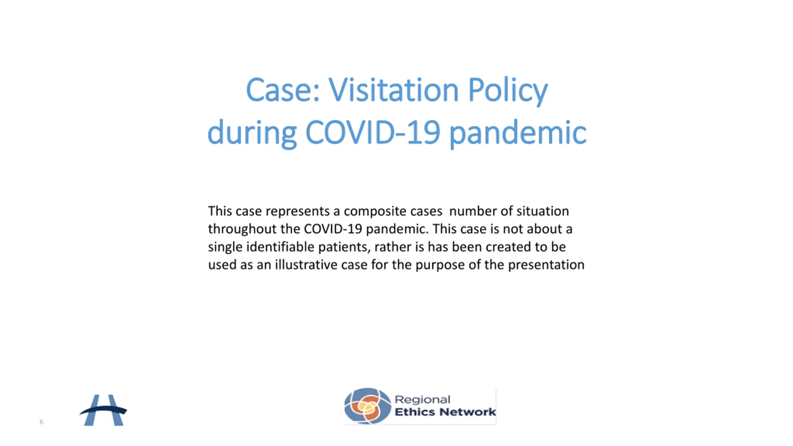 Case: Case: Visitation Policy Visitation Policy during COVID during COVID- -19 pandemic 19 pandemic This case represents a composite cases number of situation throughout the COVID-19 pandemic. This case is not about a single identifiable patients, rather is has been created to be used as an illustrative case for the purpose of the presentation 6