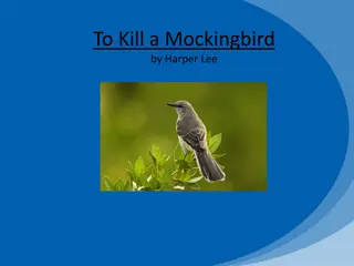 Lets write a poem! 1. Make any minor changes necessary to your list items as you create your poem. You can change punctuation and make little changes to the words to make them fit together (such as change the tenses, possessives, plurals, and capitalizations). 2. When you re close to an edited down version, if you absolutely need to add a word or two to make the poem flow more smoothly, make sense, or make a point, you may add up to three words of your own. That s three (3) and only three! 3. Read back over your edited draft one more time and make any deletions or minor changes. 4. Check the words and choose a title do not use Found Poem or To Kill a Mockingbird Poem as your title, but DO add inspired by To Kill a Mockingbird underneath your chosen title.