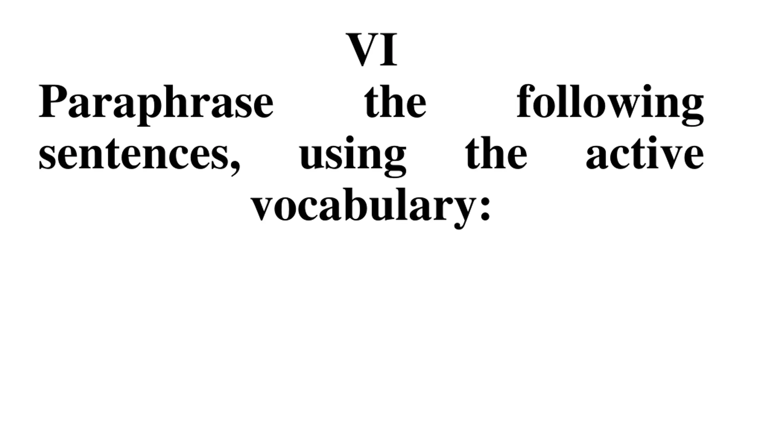 VI the Paraphrase sentences, following the using vocabulary: active