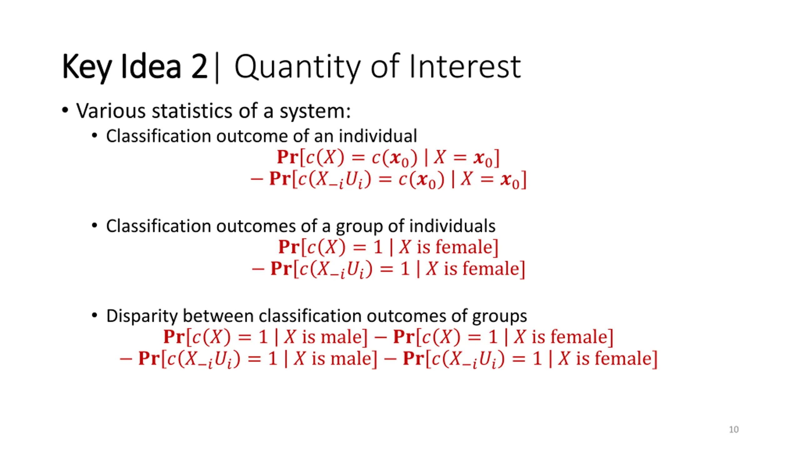 Key Idea Key Idea 2 2| Quantity of Interest Various statistics of a system: Classification outcome of an individual ?? ? ? = ?(?0) ? = ?0] ?? ? ? ??? = ?(?0) ? = ?0] Classification outcomes of a group of individuals ?? ? ? = 1 ? is female] ?? ? ? ??? = 1 ? is female] Disparity between classification outcomes of groups ?? ? ? = 1 ? is male] ?? ? ? = 1 ? is female] ?? ? ? ??? = 1 ? is male] ?? ? ? ??? = 1 ? is female] 10