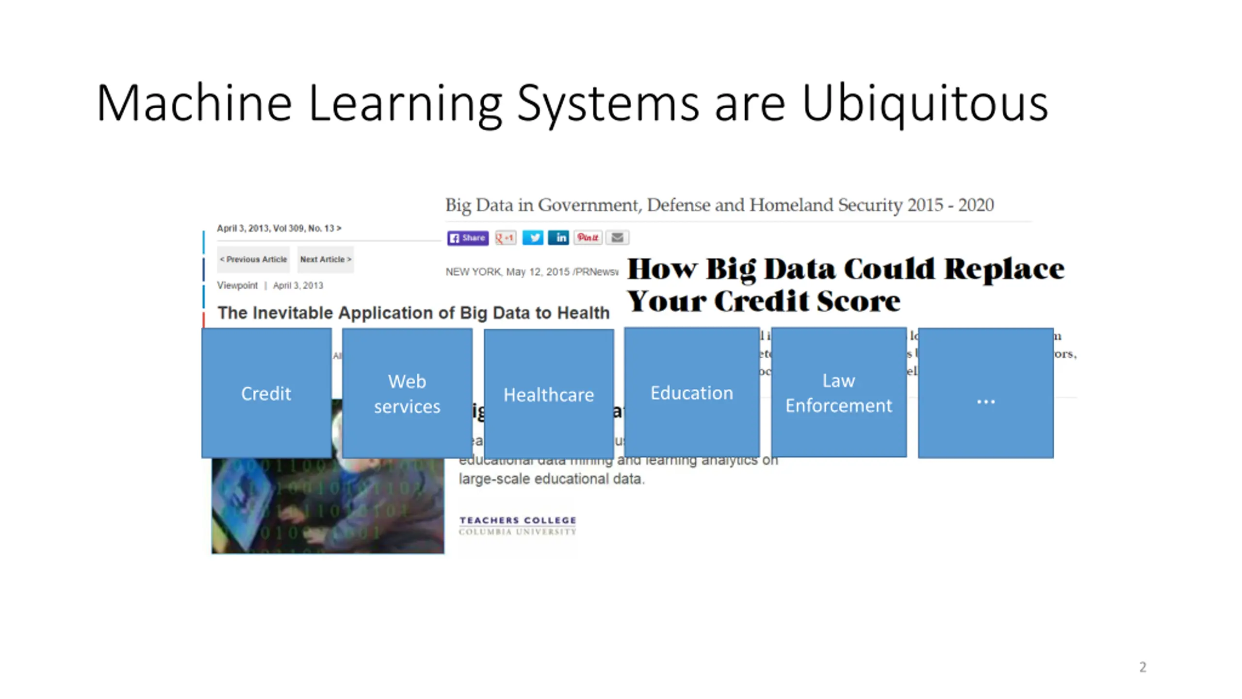 Machine Learning Systems are Ubiquitous Law Web services Education Credit Healthcare Enforcement 2