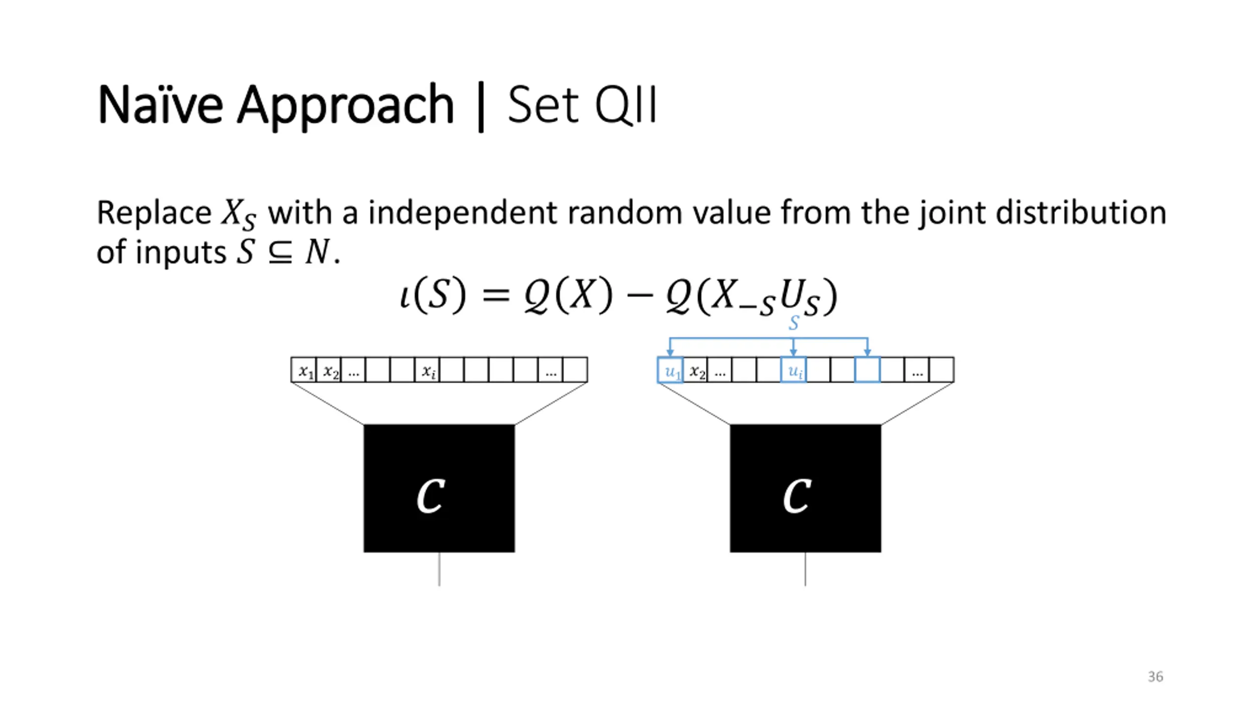 Nave Approach | Na ve Approach | Set QII Replace ?? with a independent random value from the joint distribution of inputs ? ?. ? ? = ? ? ?(? ???) ? ?1?2 ?? ?1?2 ?1 ?? ?? ? ? 36