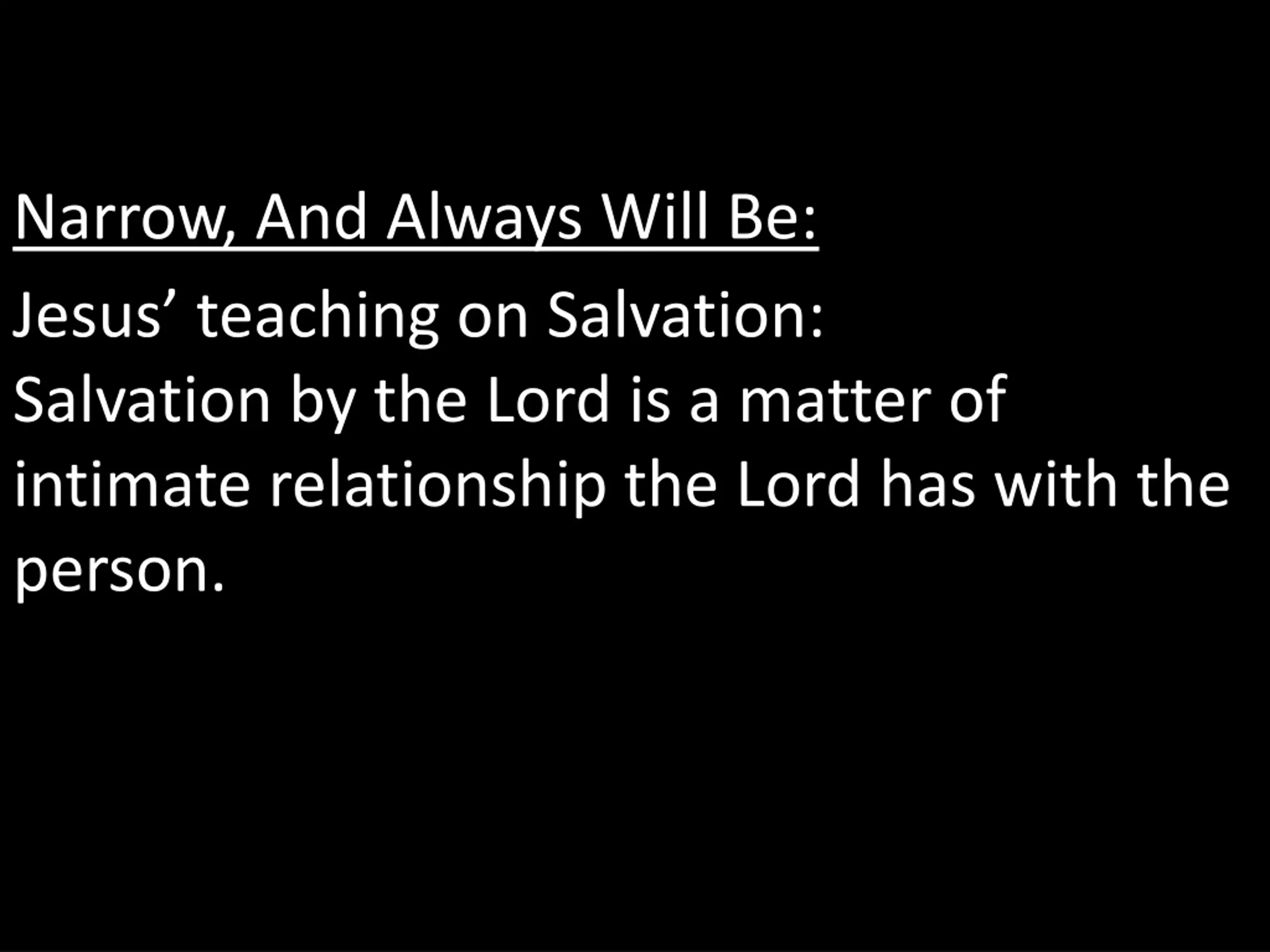 Narrow, And Always Will Be: Jesus teaching on Salvation: Salvation by the Lord is a matter of intimate relationship the Lord has with the person.