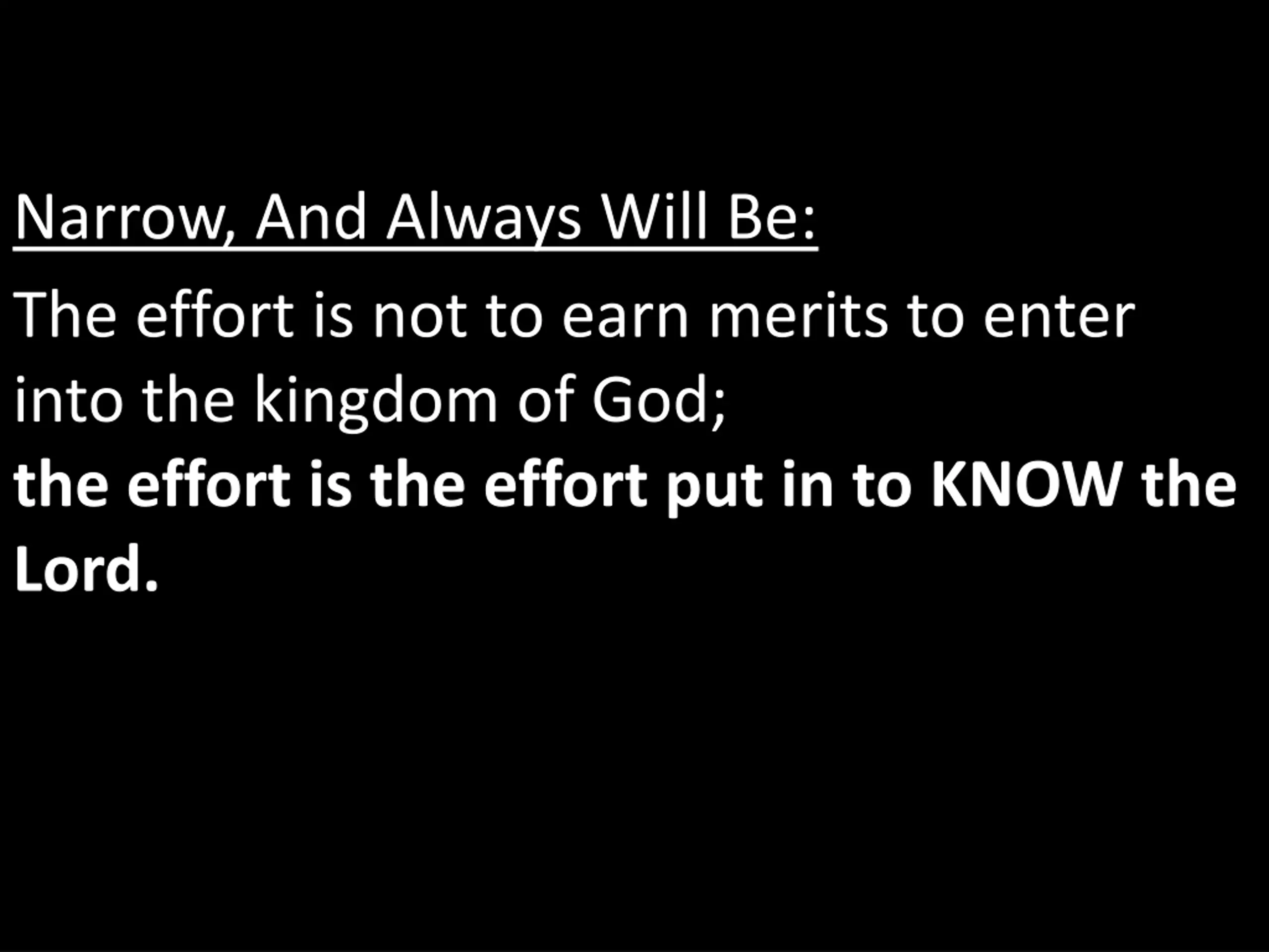Narrow, And Always Will Be: The effort is not to earn merits to enter into the kingdom of God; the effort is the effort put in to KNOW the Lord.