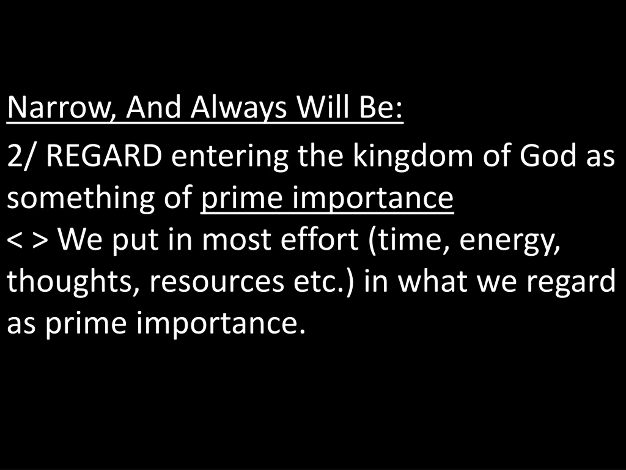 Narrow, And Always Will Be: 2/ REGARD entering the kingdom of God as something of prime importance < > We put in most effort (time, energy, thoughts, resources etc.) in what we regard as prime importance.