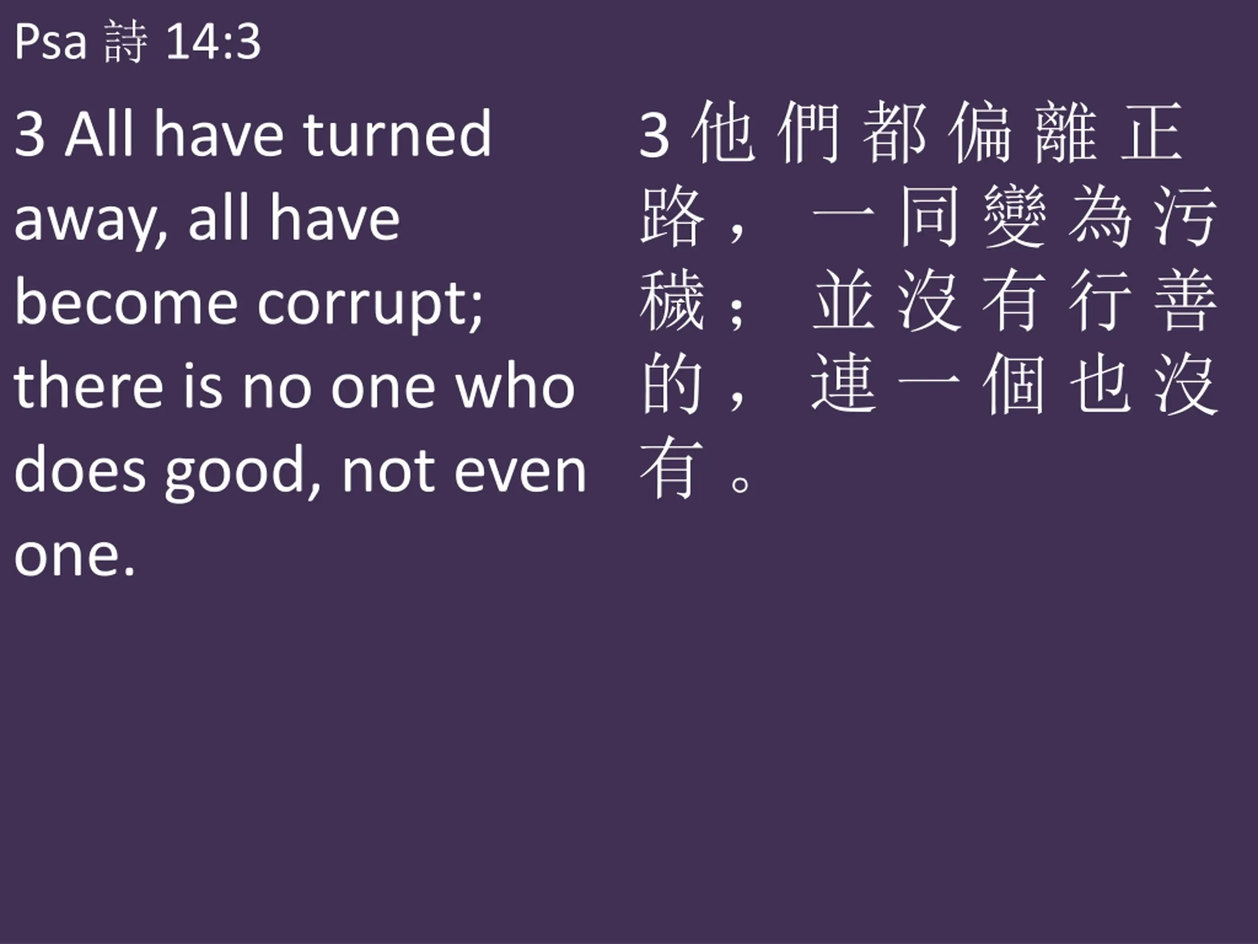 Psa 14:3 3 3 All have turned away, all have become corrupt; there is no one who does good, not even one.